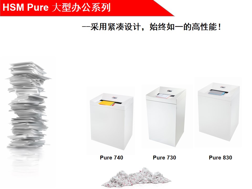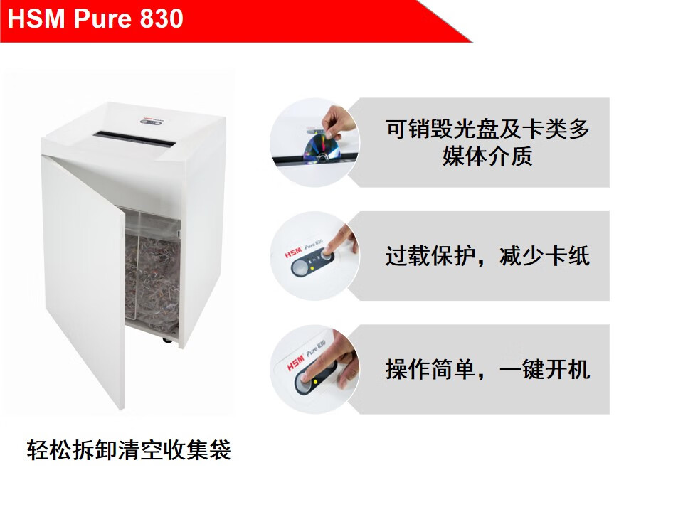 赫斯密(HSM) Pure 830 大型商用办公碎纸机4级保密可碎A3幅面大容量安全触控粉碎机 白色