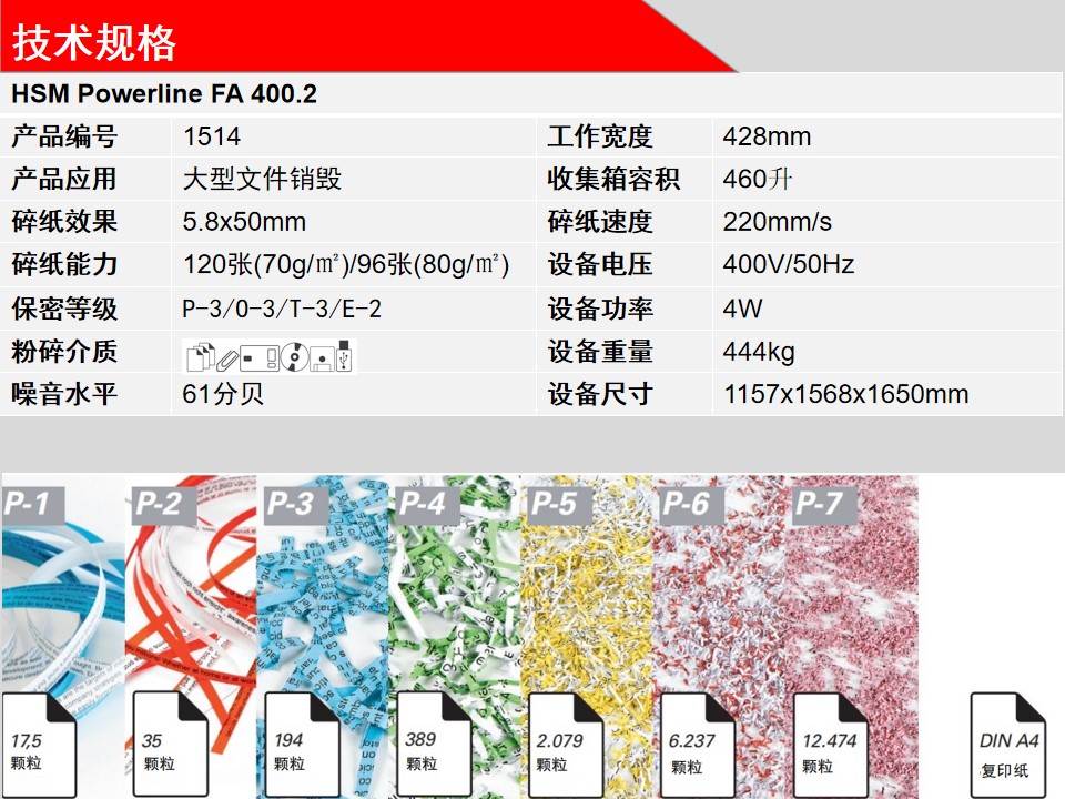 赫斯密(HSM) FA400.2 带自动进料平台的大型碎纸机 可碎光盘U盘 1514 白色