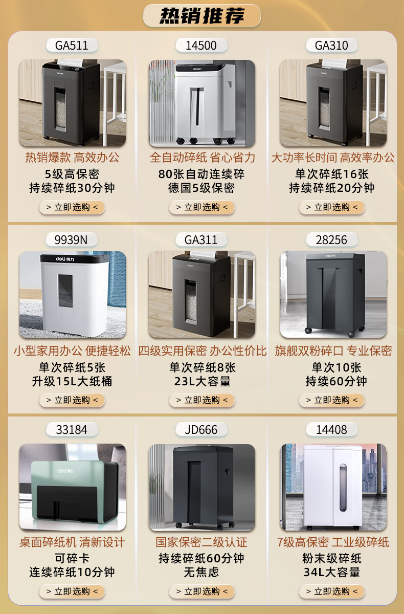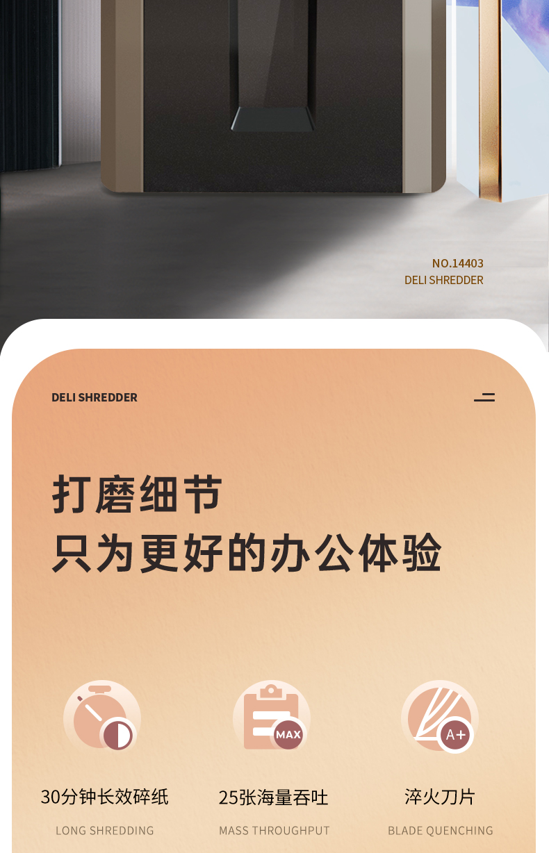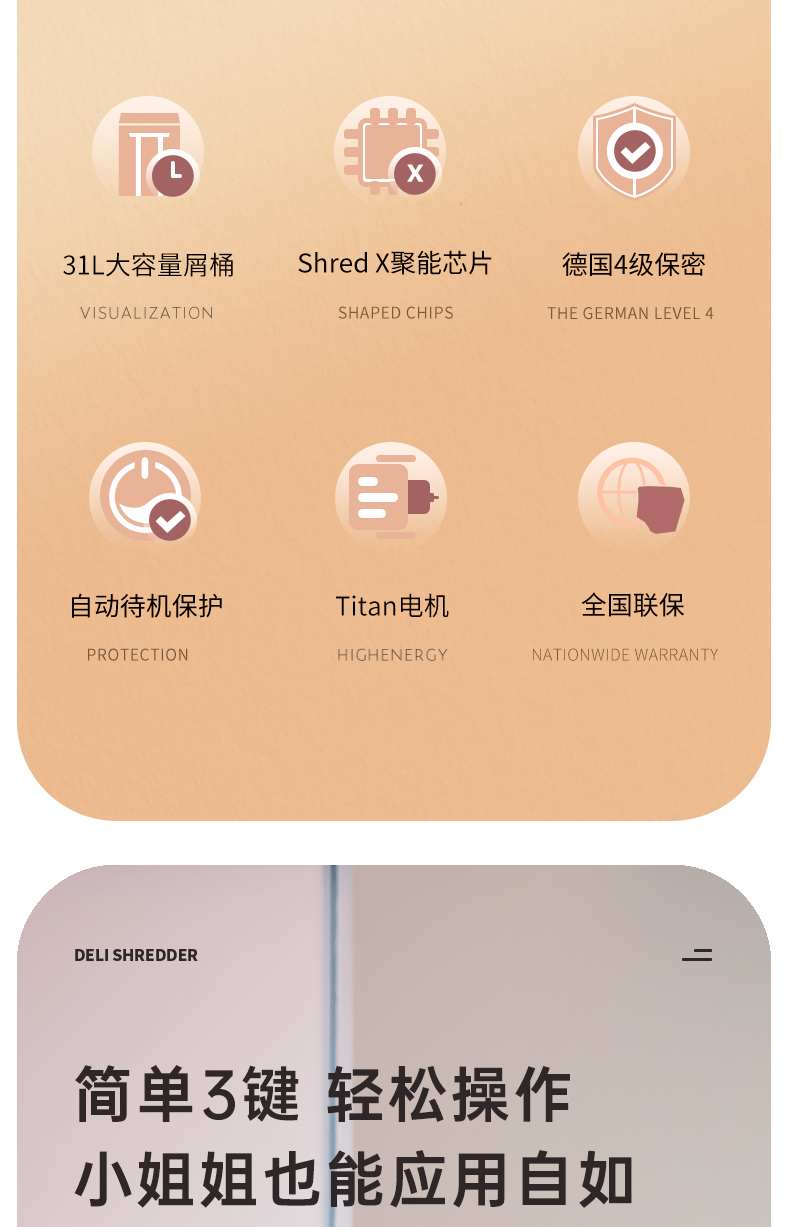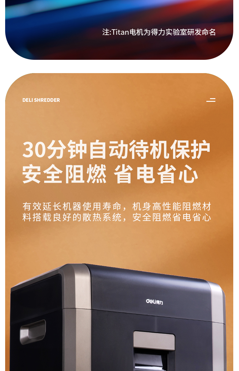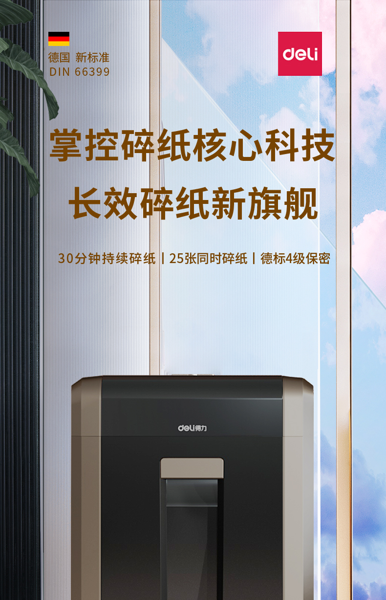 得力(deli)4级保密办公碎纸机 专业销毁碎纸机(单次25张 31L 持续30分钟 可碎卡碎光盘)14403