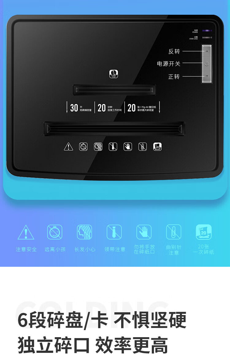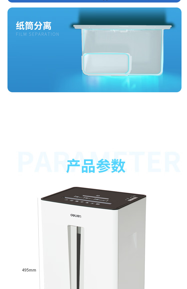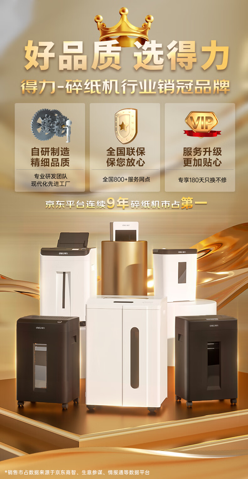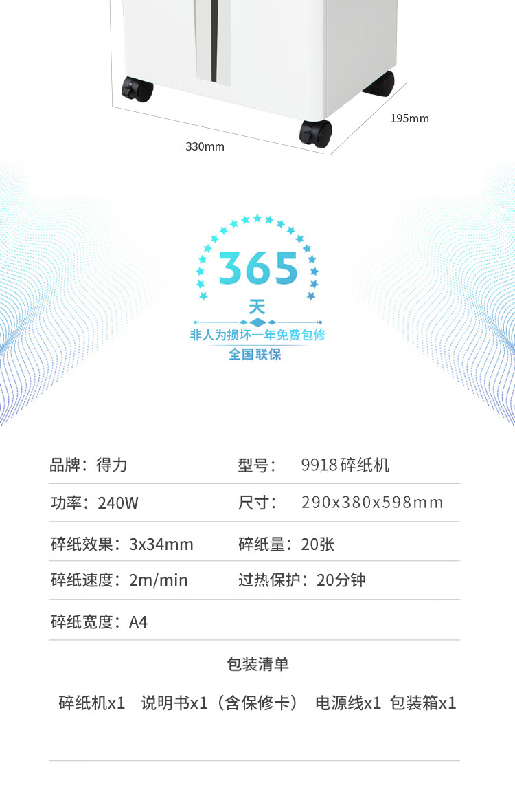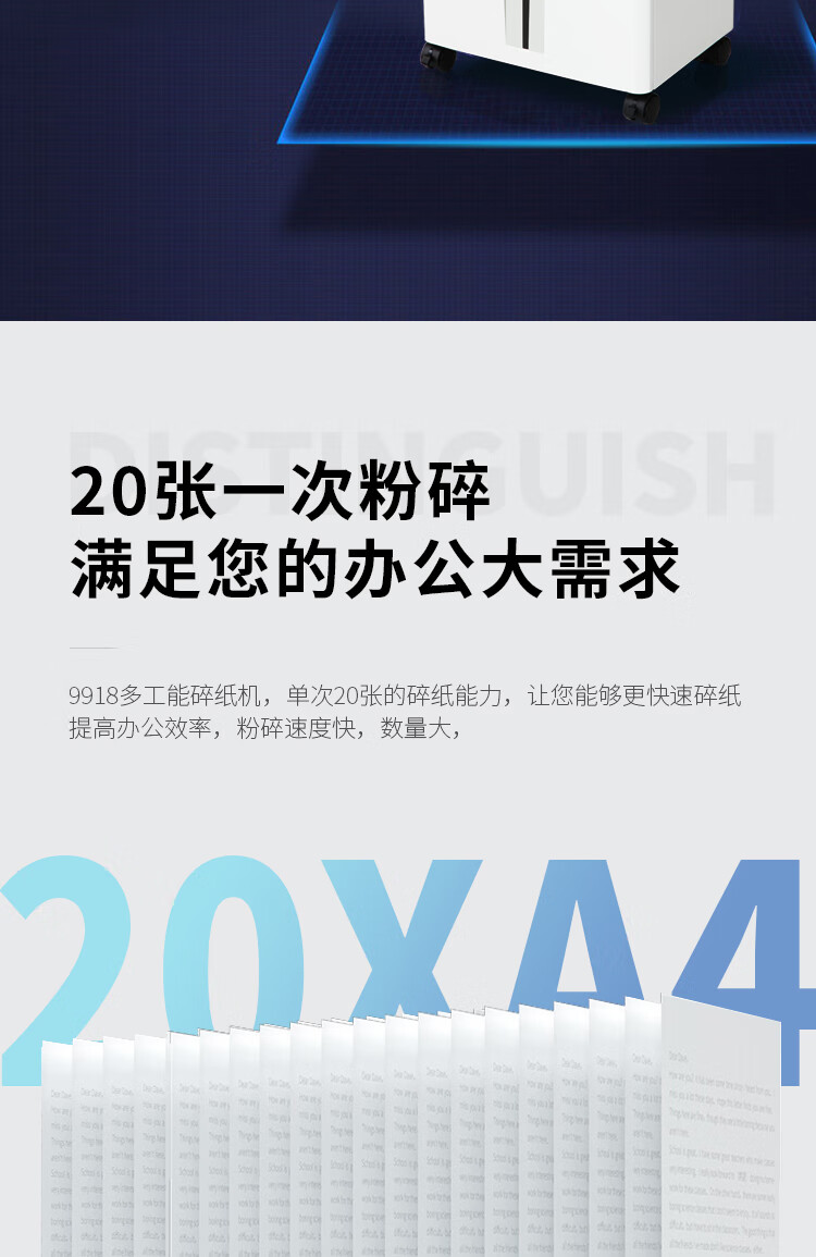 得力(deli)4级保密专业办公碎纸机(单次20张 30L 持续20分钟 可碎卡碎光盘)9918