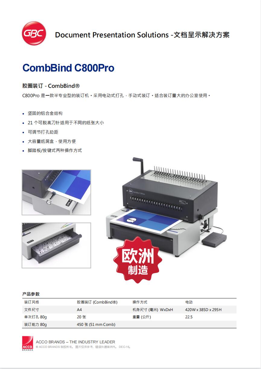 GBC杰必喜 C800电动梳式装订机 胶圈/夹边条电动打孔机