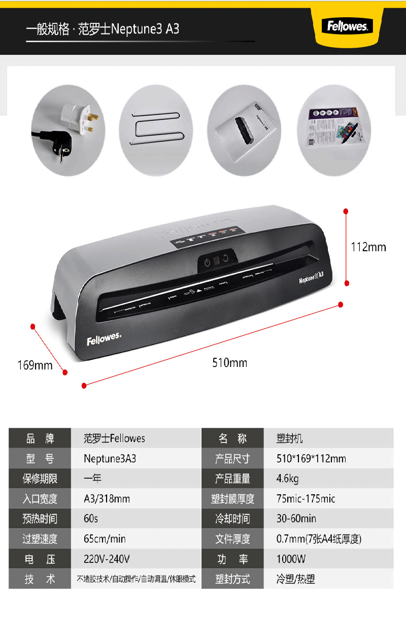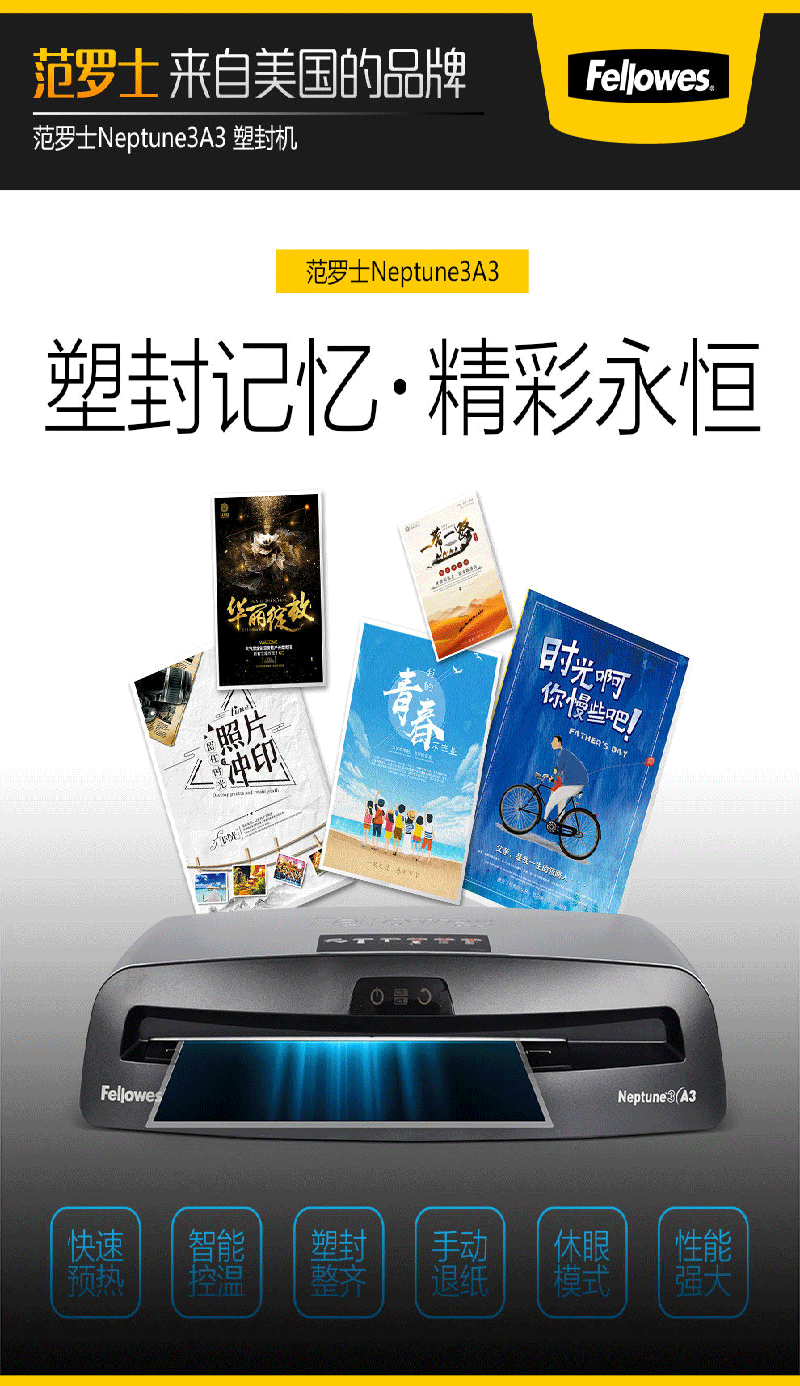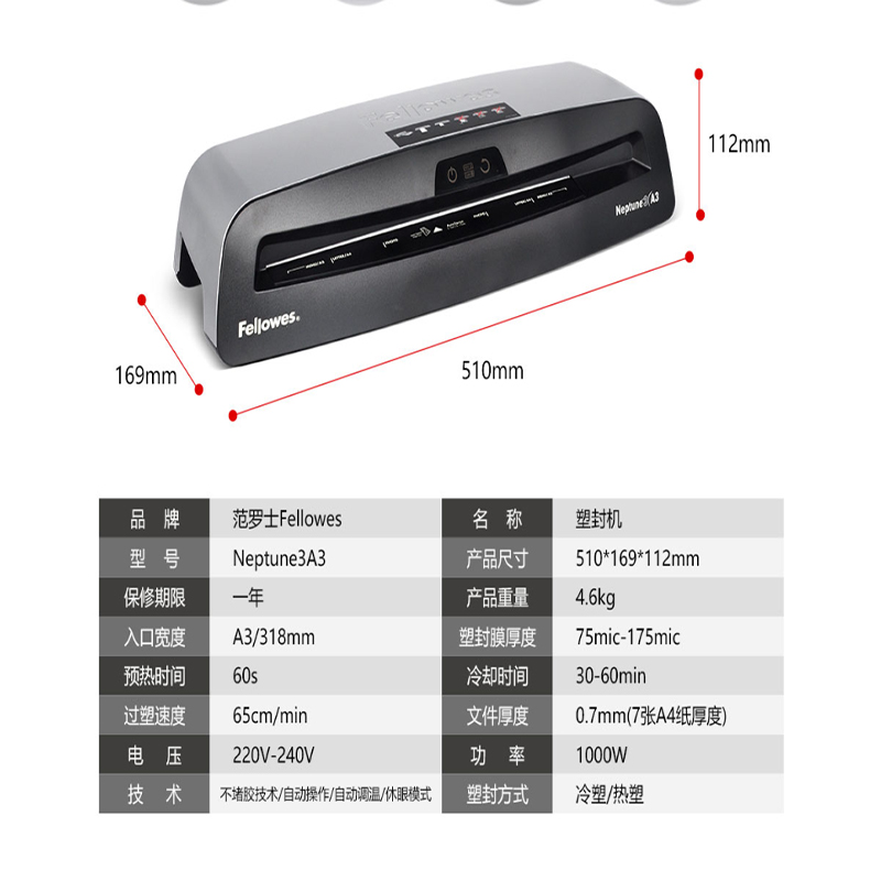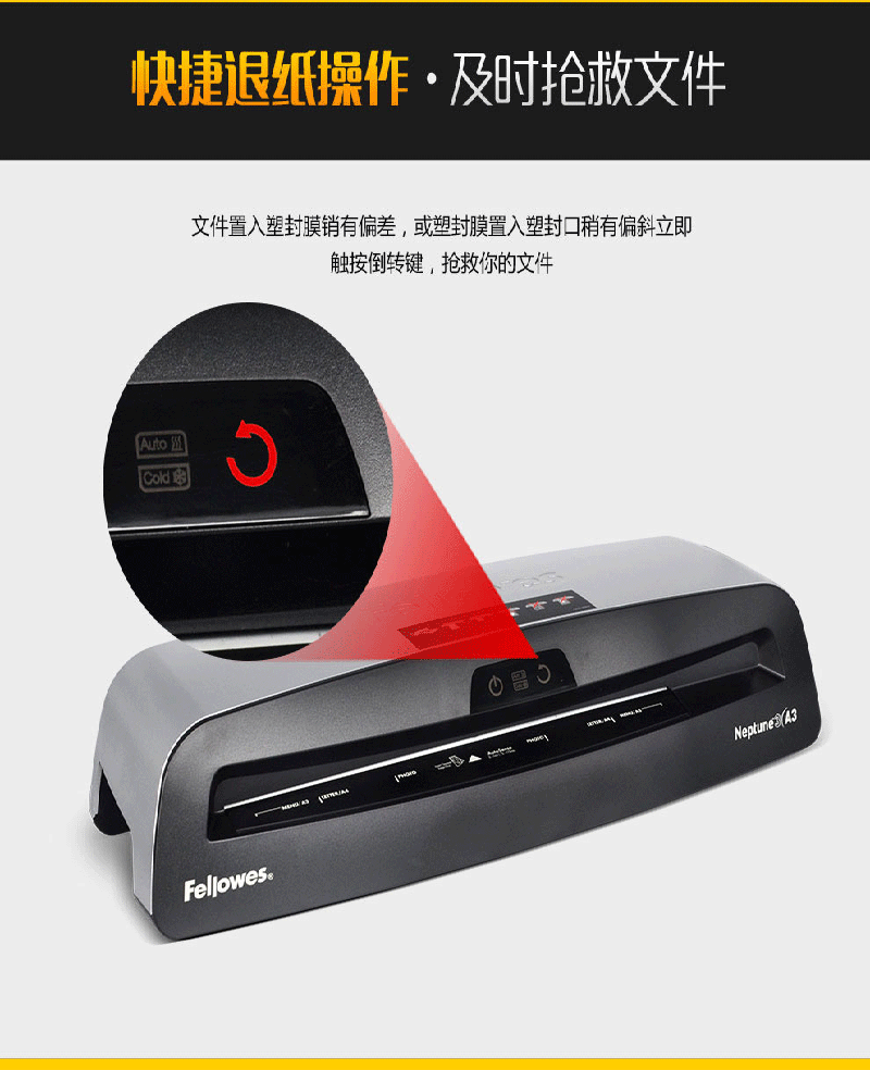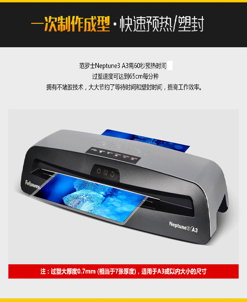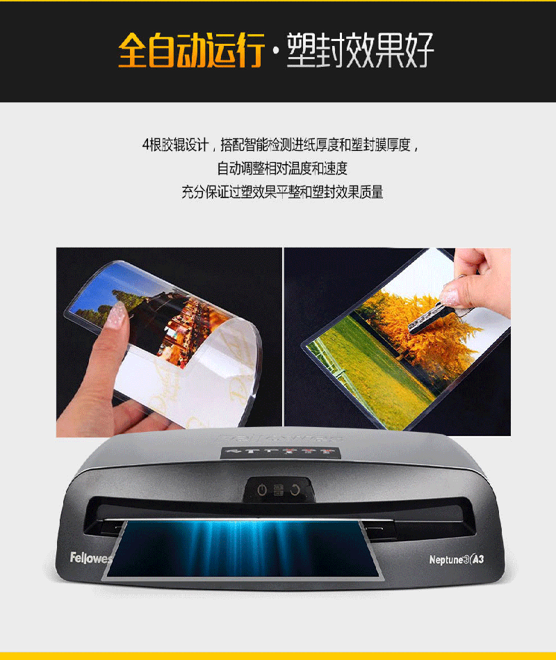 范罗士(Fellowes)海王星商用办公塑封机A3过塑机冷塑热塑压膜机过胶机Neptune A3