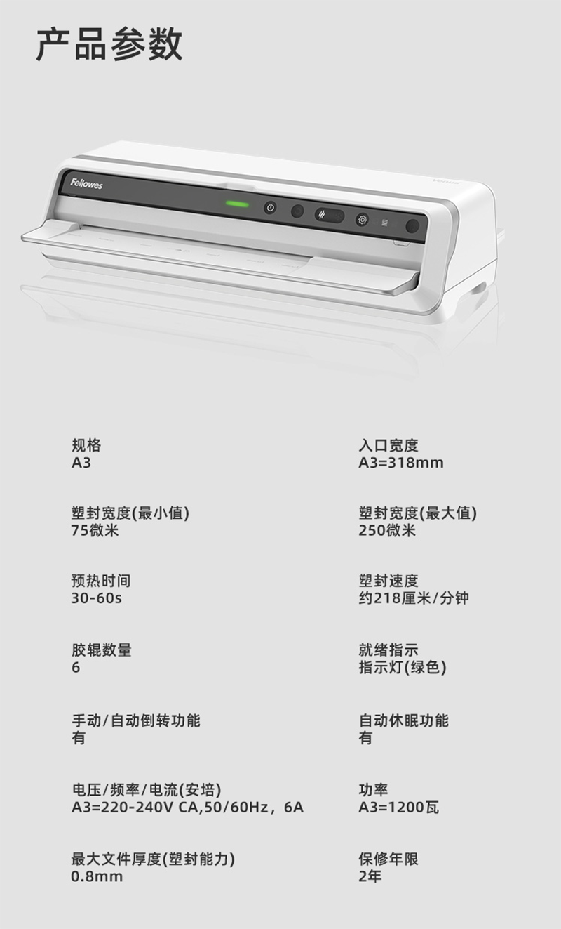 范罗士(Fellowes)A3办公商用快速塑封机 智能触控照片文件过塑机过膜机Venus A3