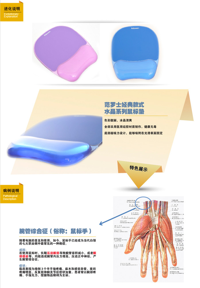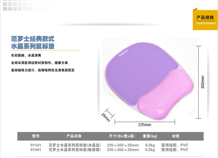 范罗士91441人体工学硅胶鼠标垫办公游戏防滑鼠标垫腕托魅惑紫