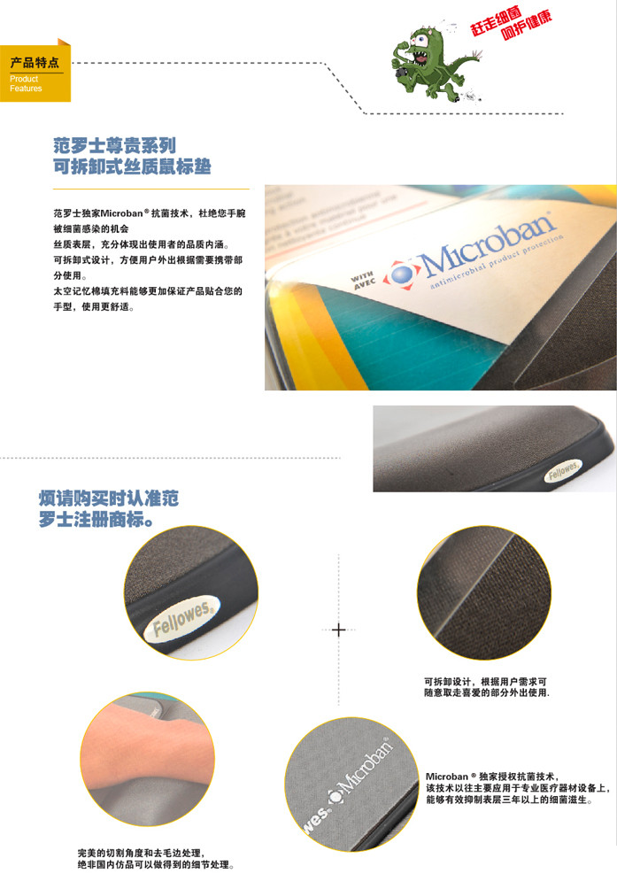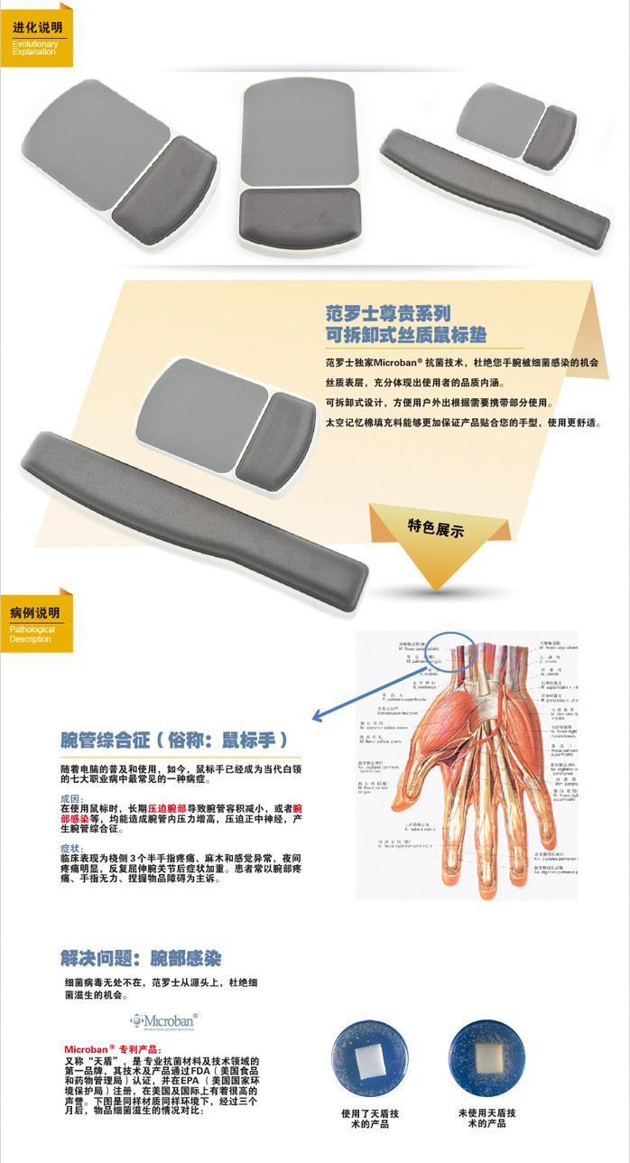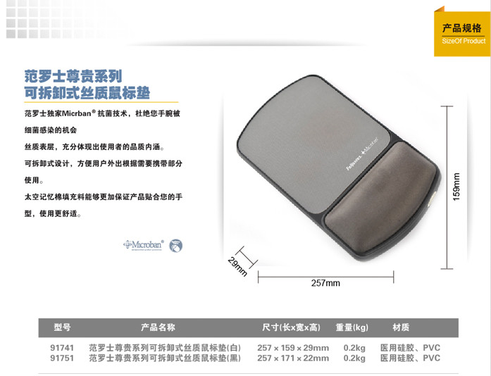 范罗士91751鼠标垫丝质黑框鼠标护腕垫(伯爵灰)