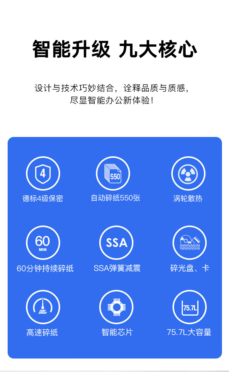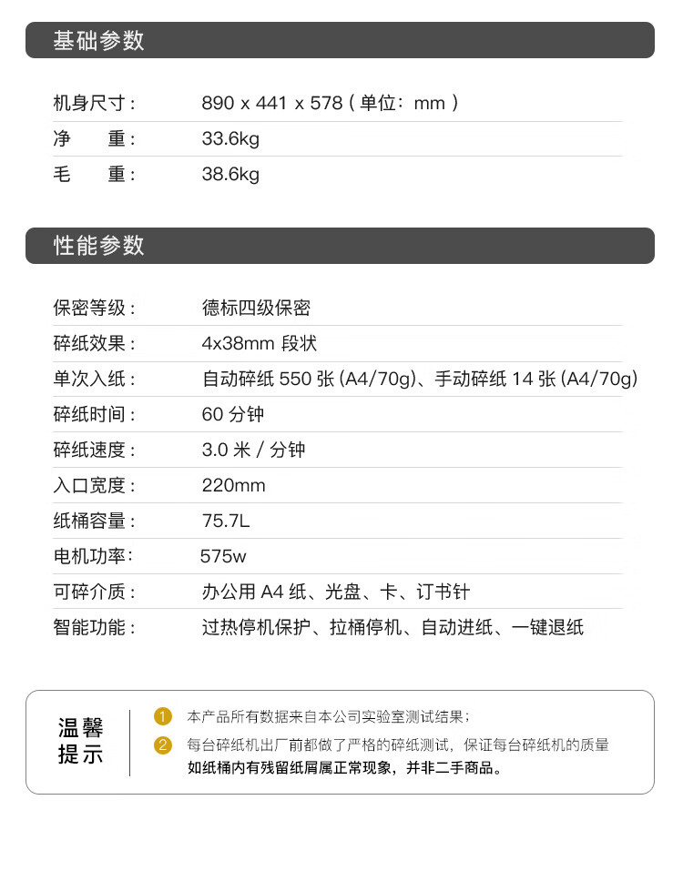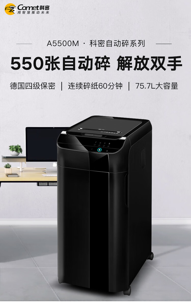 科密 全自动碎纸机4级高保密长时间(全自动550张 手动14张 持续60分钟 75.7L 可碎卡、碎光盘)A5500M