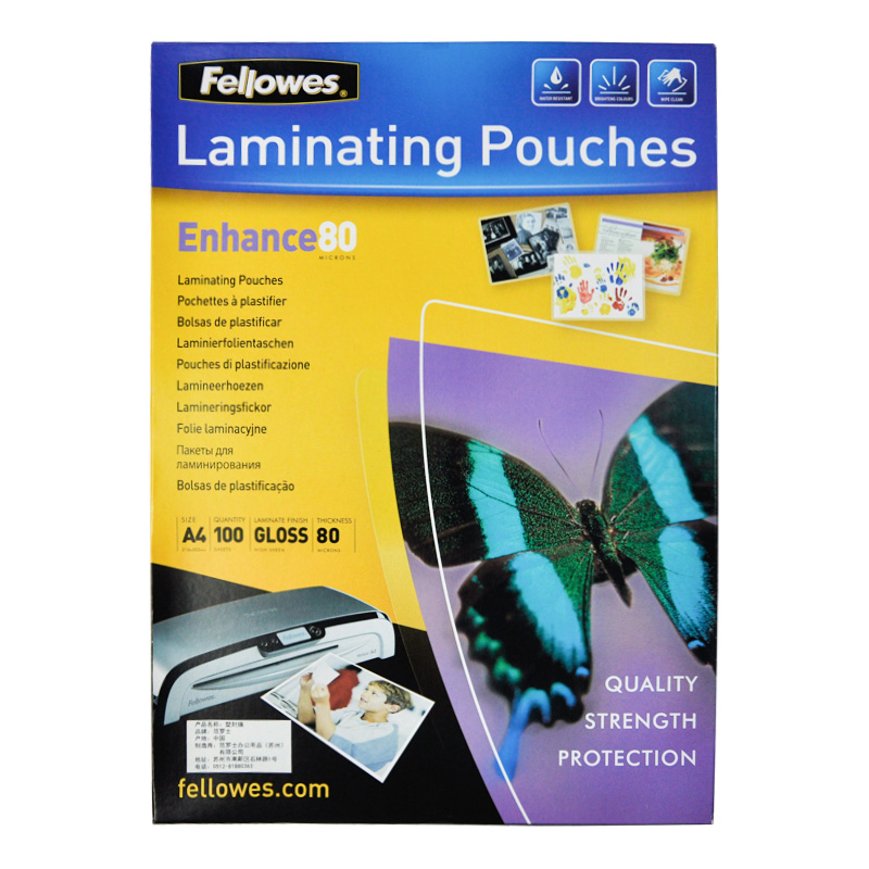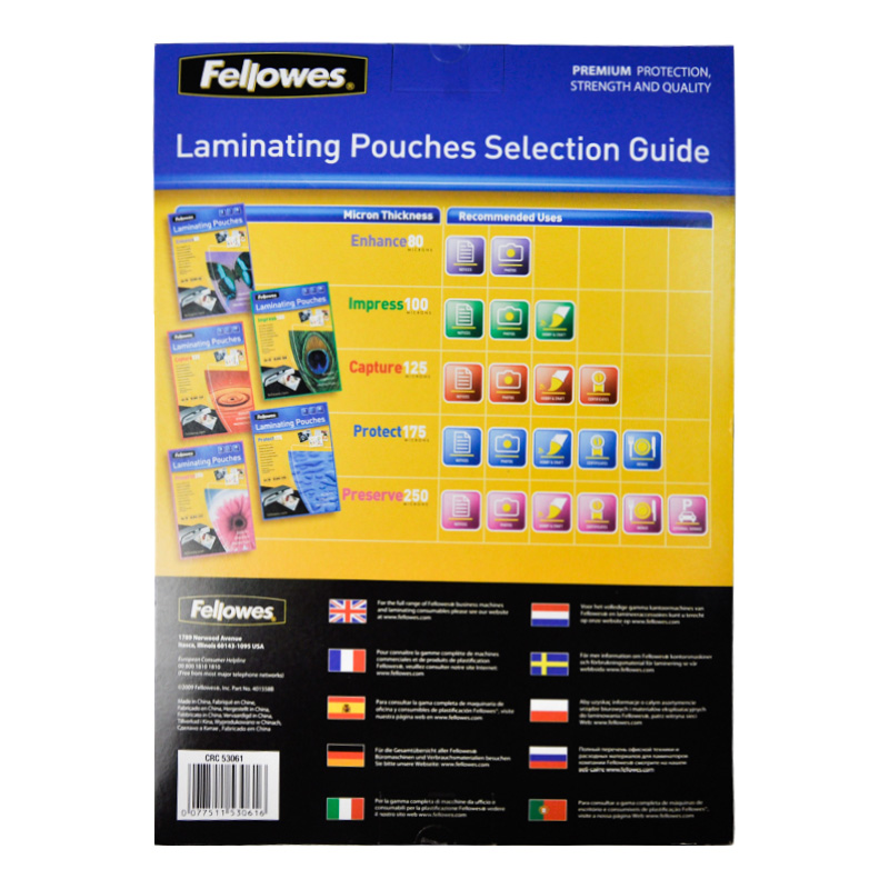 Fellowes范罗士53061 A4 80mic塑封膜照片文件透明护卡膜过塑膜A4 8丝 100张