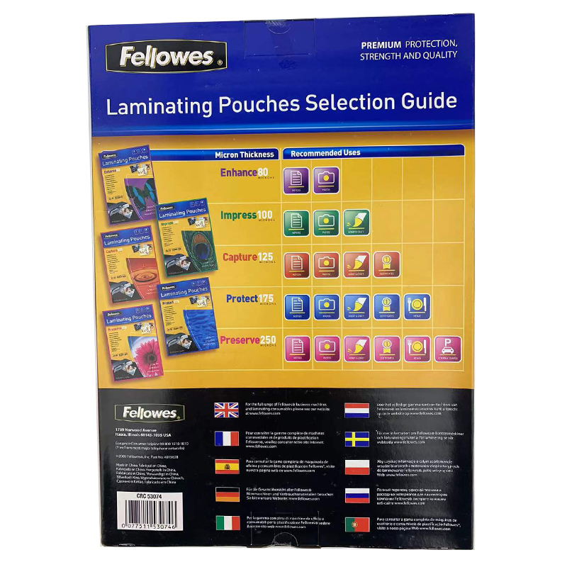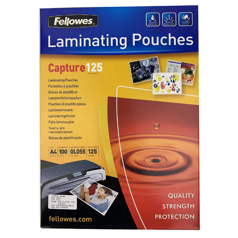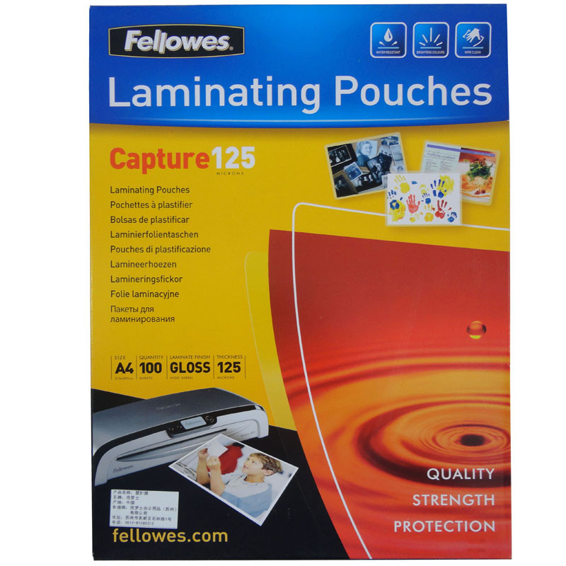 范罗士(Fellowes)A4 125mic塑封膜53074照片文件透明过塑膜优质加厚护卡膜A4 12.5丝 100张