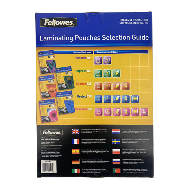范罗士(Fellowes)A3 80mic塑封膜53062文件资料过塑膜优质护卡膜A3 8丝 100张