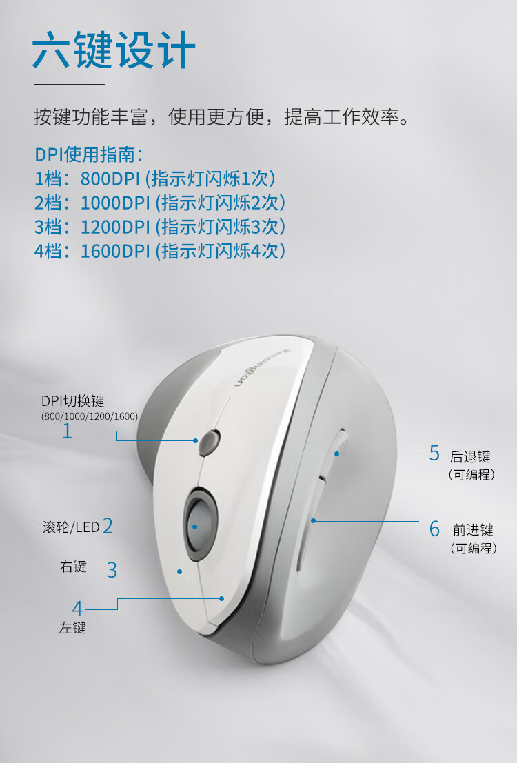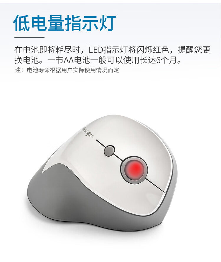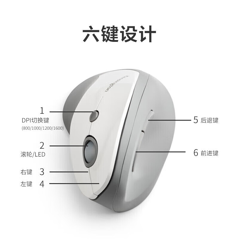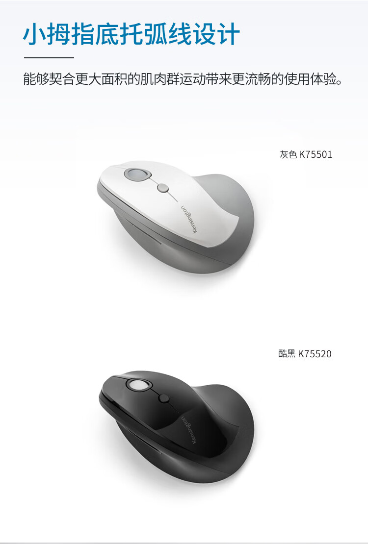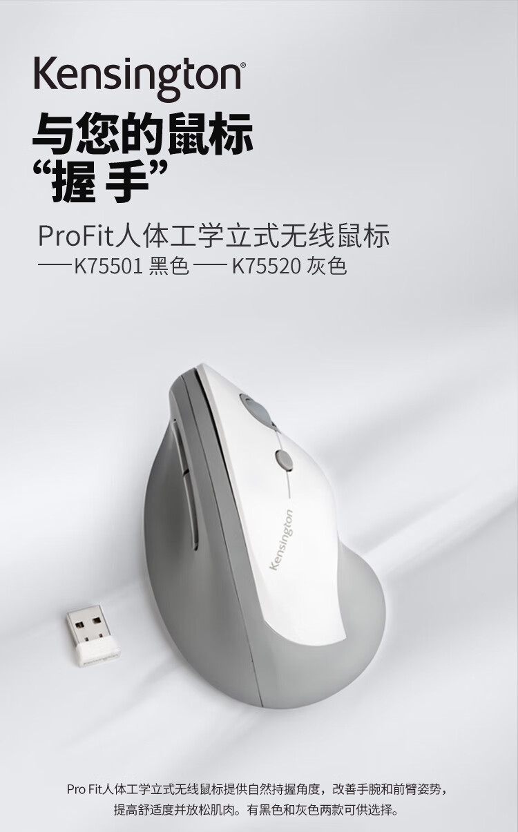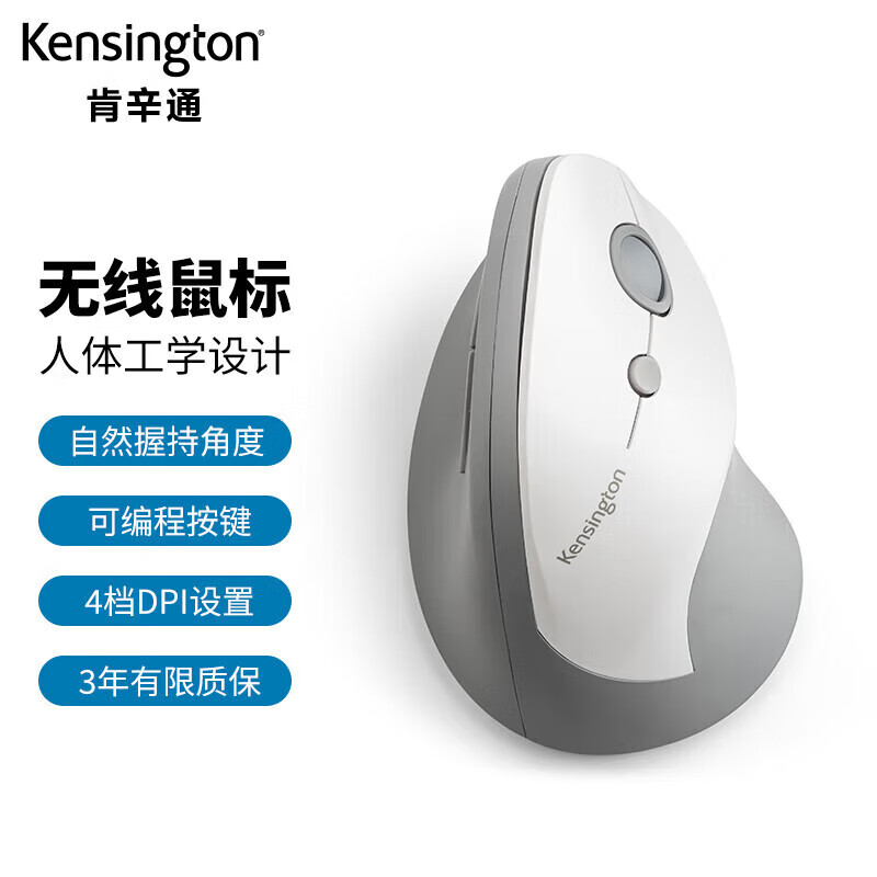 肯辛通Kensington 人体工学无线鼠标六键编程垂直鼠标适用于华硕神舟联想惠普Thinkpad 灰色K75520
