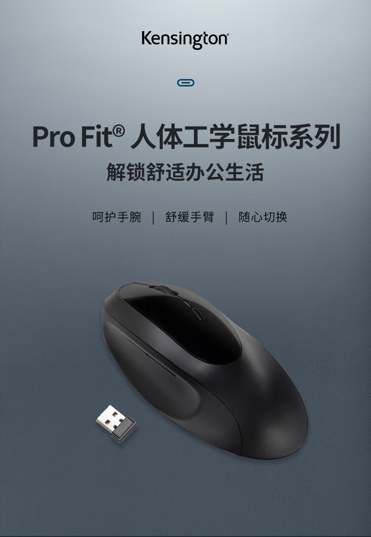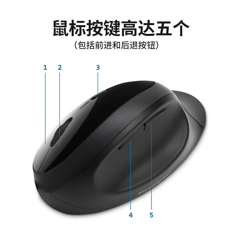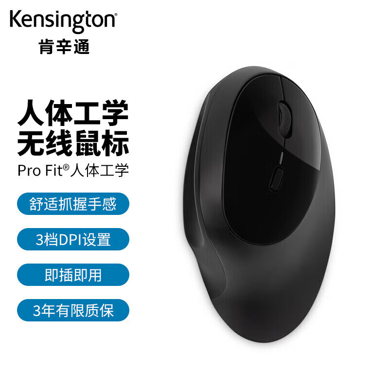 肯辛通(Kensington)无线蓝牙办公鼠标 适用Huawei联想戴尔 垂直鼠标 人体学竖立舒适按键编程鼠标 K75404