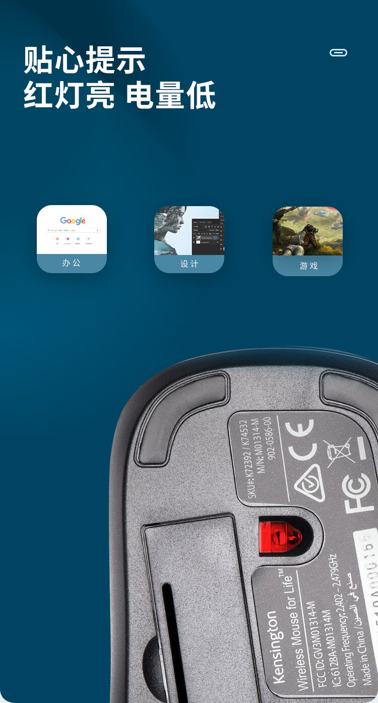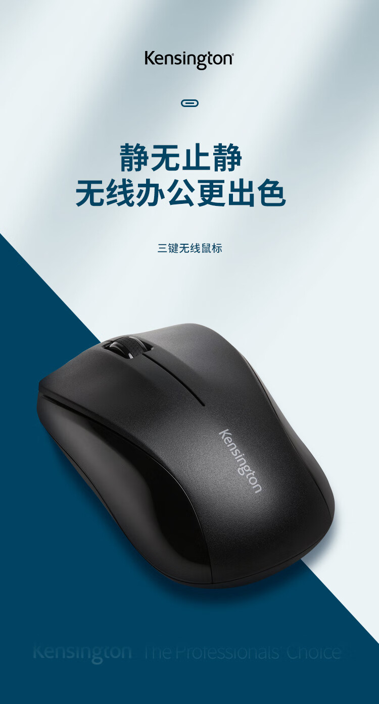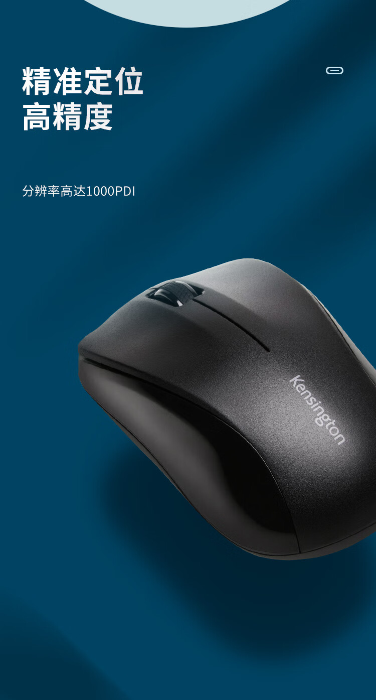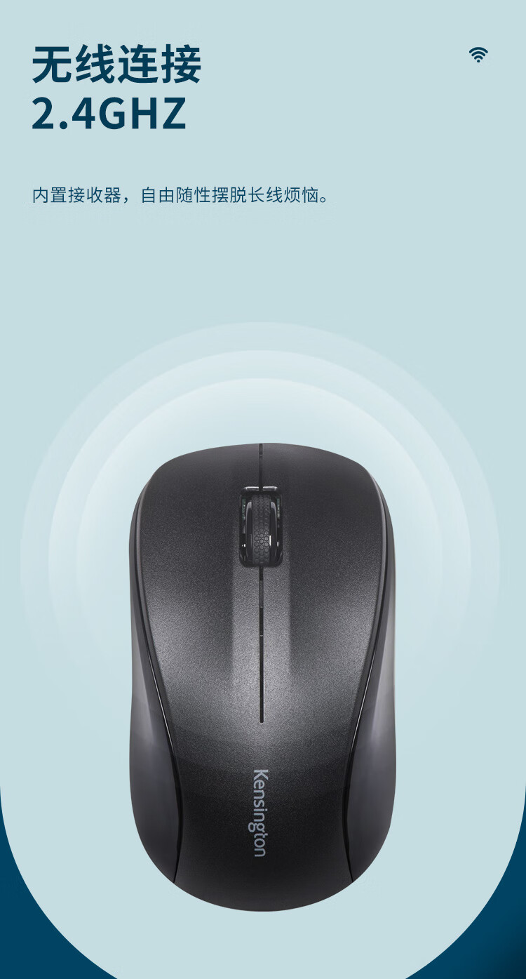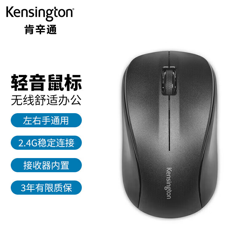 肯辛通Kensington 无线鼠标左右手鼠标 黑色带接收器 轻音适用于Huawei华硕联想神舟惠普 K72392