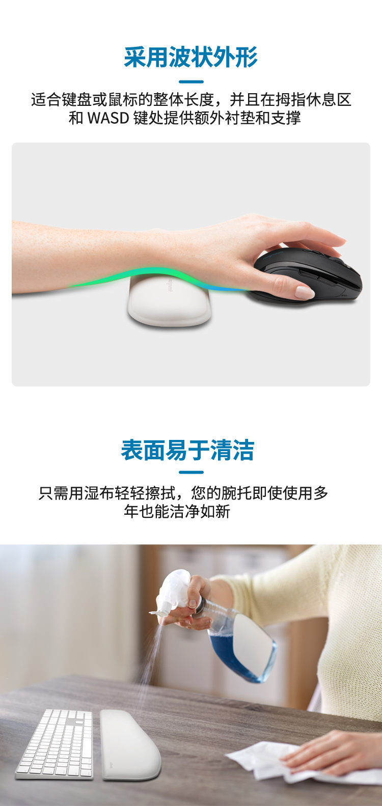 肯辛通(Kensington) ErgoSoft™键盘机械键盘超薄键盘鼠标腕垫 人体工学键盘腕垫腕托K52799