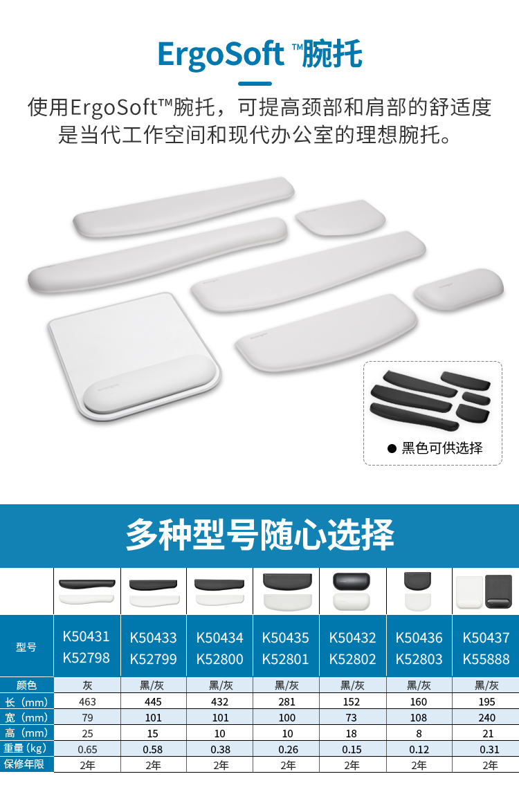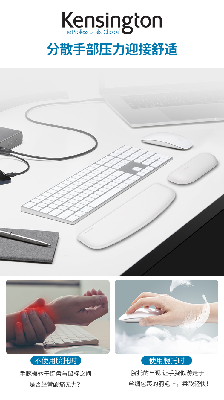 肯辛通(Kensington) ErgoSoft™键盘机械键盘超薄键盘鼠标腕垫 人体工学键盘腕垫腕托K52801
