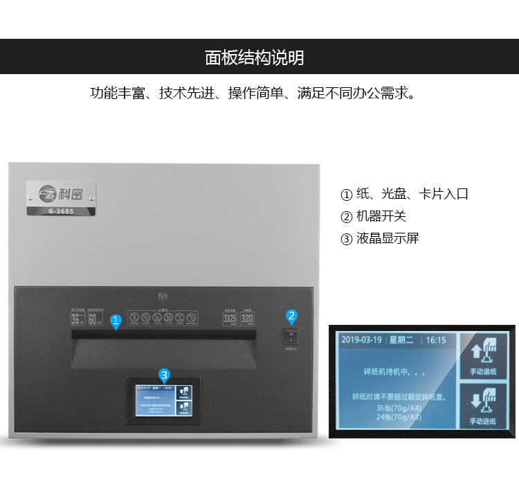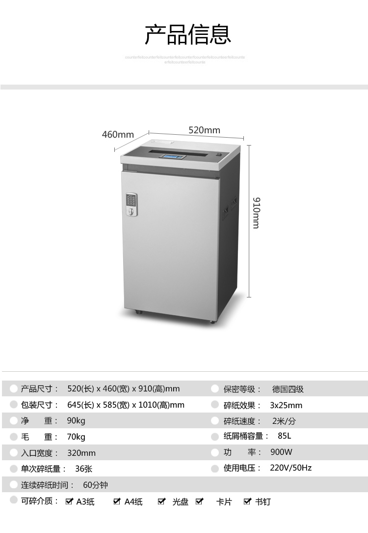 科密(comet)金盾系列 G-3685 商用办公高保密碎纸机 大型长时间大吞吐文件光盘卡粉碎机
