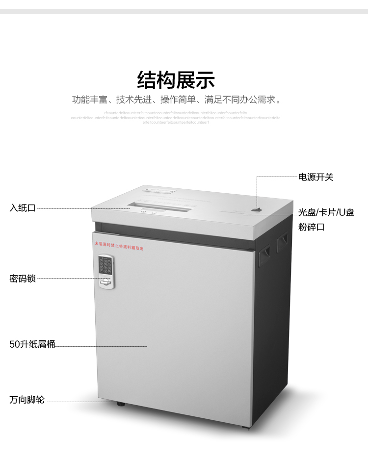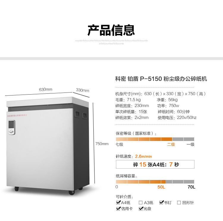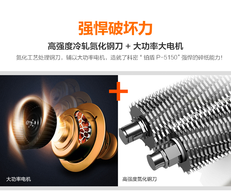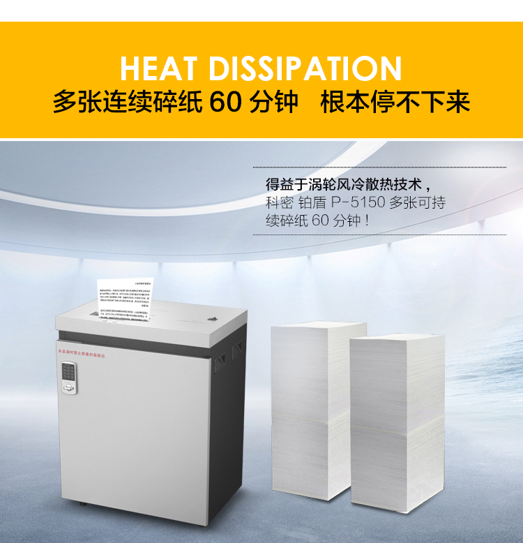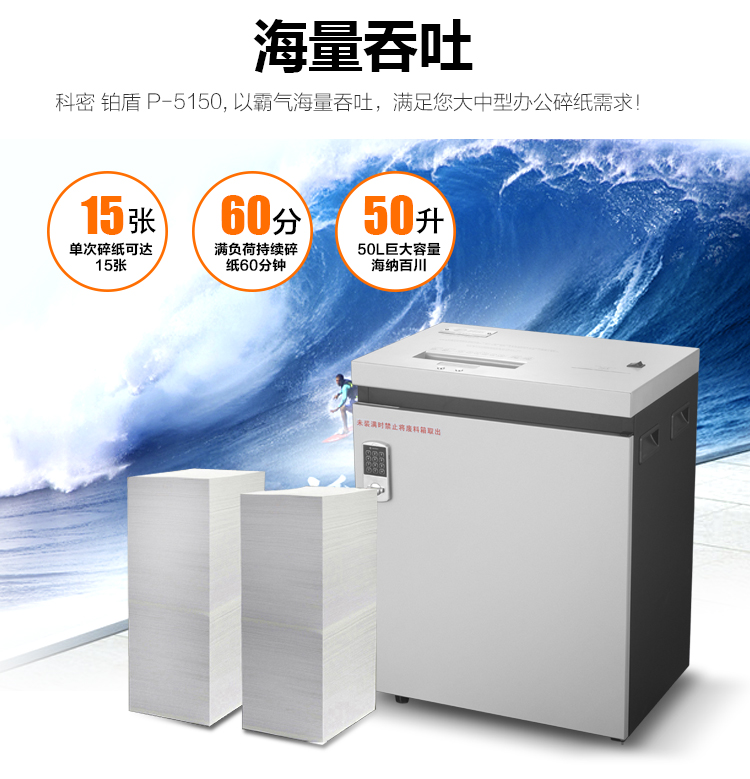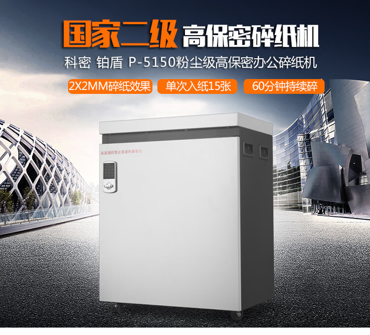 科密 铂盾P-5150 国家二级保密认证专业销毁碎纸机 大型办公商用粉碎机(15张 60分钟 50L 碎卡光盘)