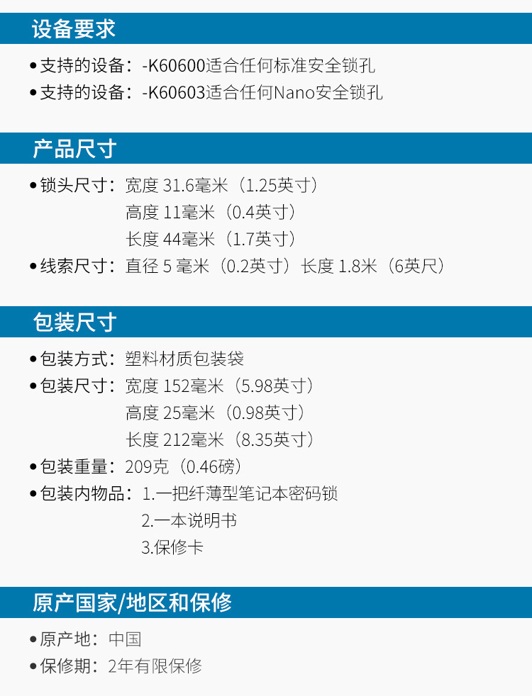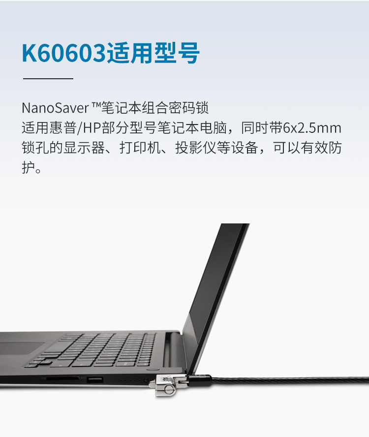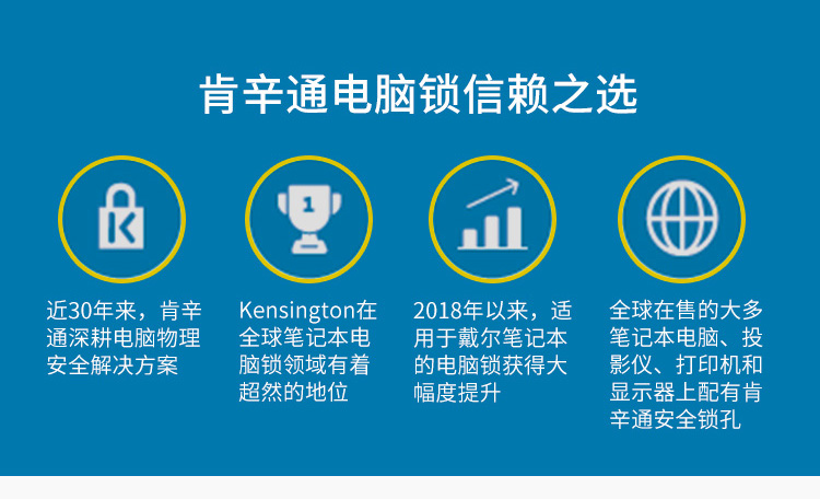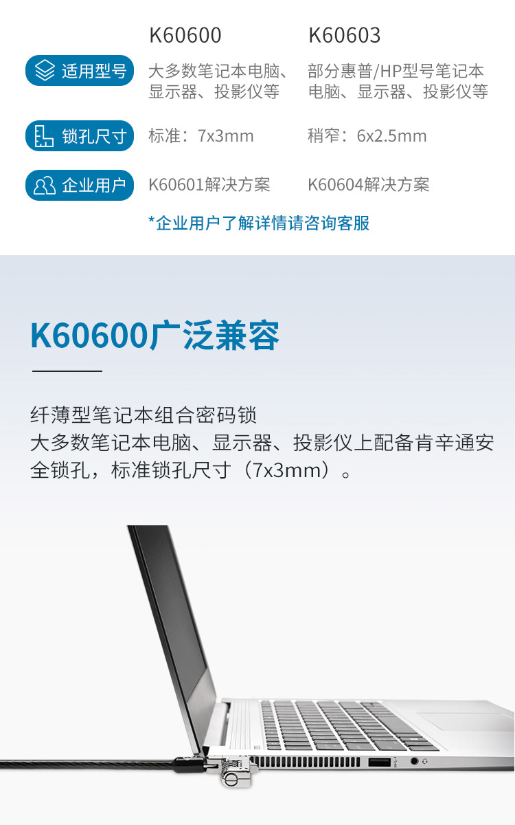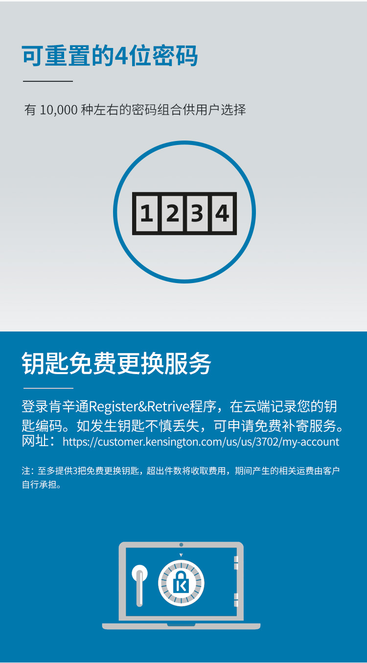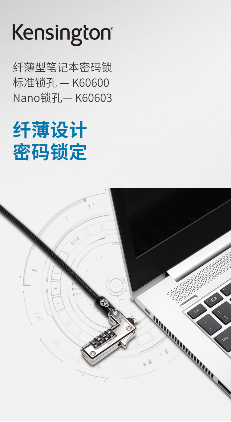 肯辛通(Kensington) 广泛兼容 笔记本电脑锁 标准线缆锁 笔记本通用密码锁 标准锁孔 锁 密码锁 K60600