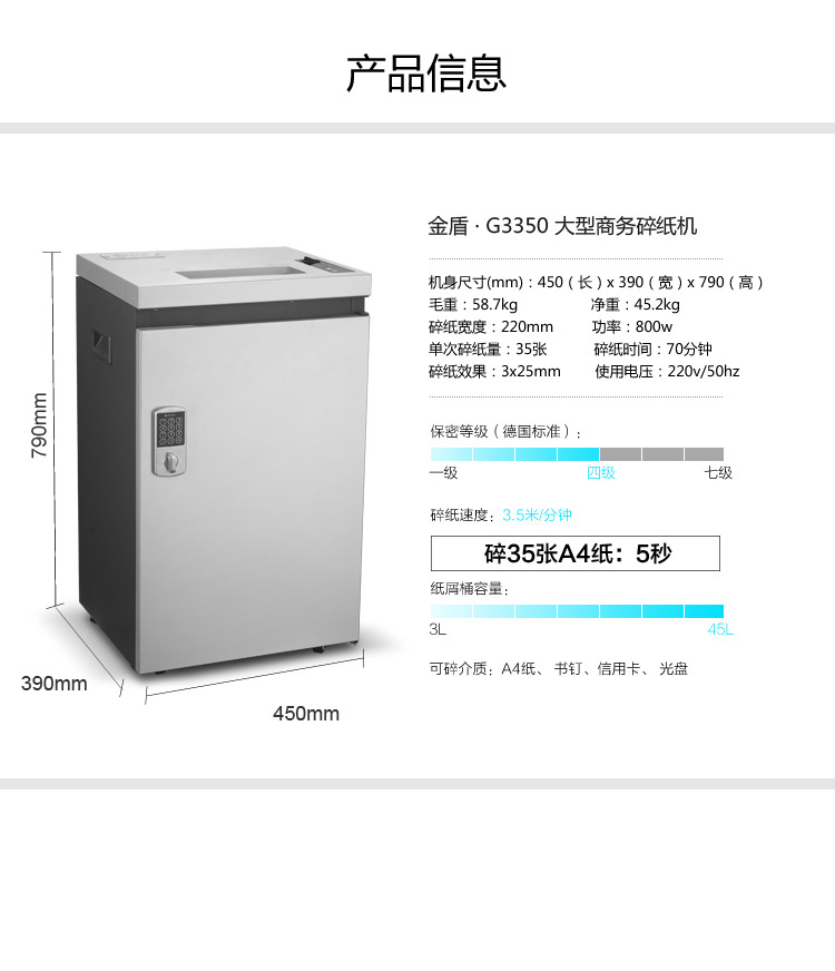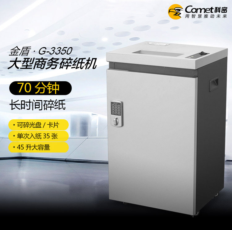 科密(comet)金盾G-3350碎纸机长时间大型碎纸机 45L大容量办公商用文件颗粒粉碎机