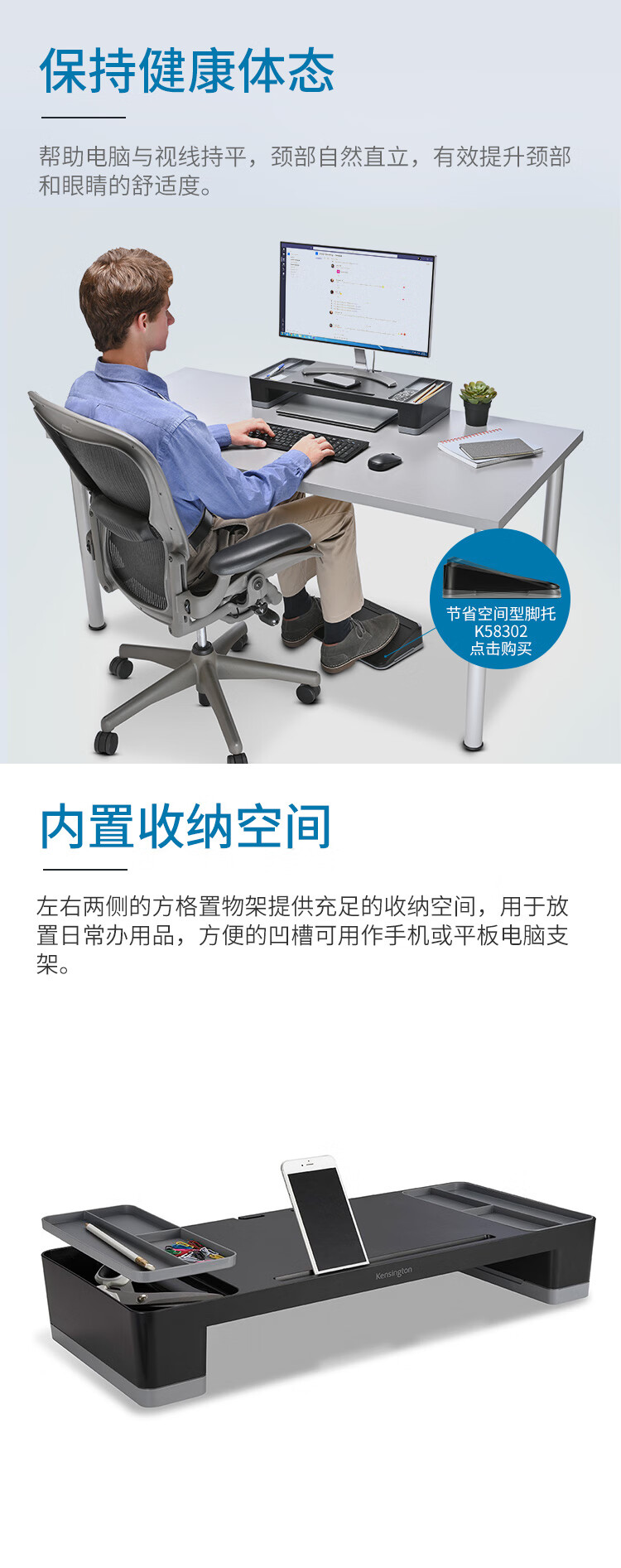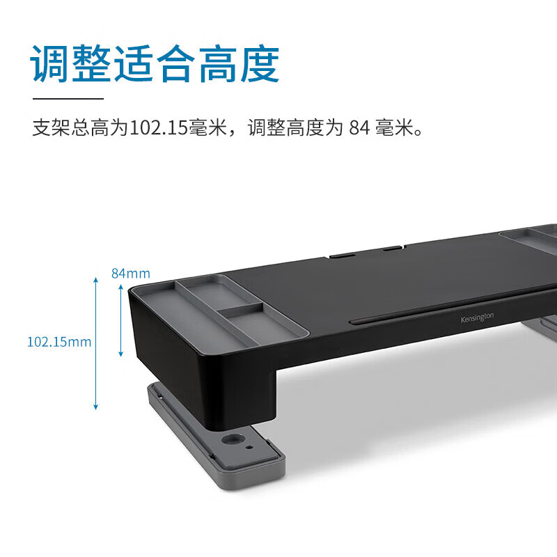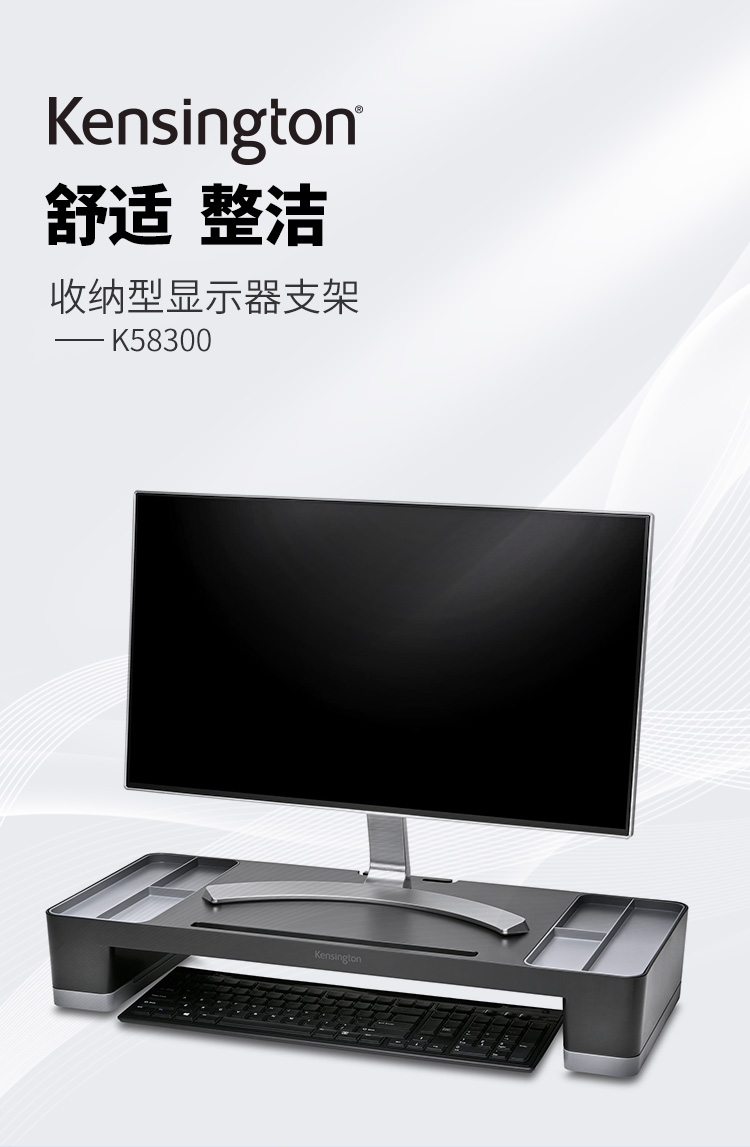 肯辛通(Kensington) 收纳型台式显示器支架增高架 置物架底座支架 键盘收纳架 K58300