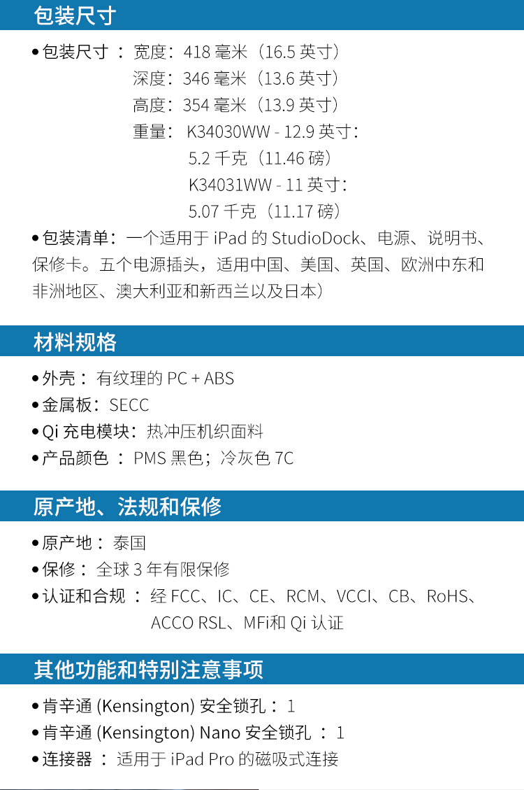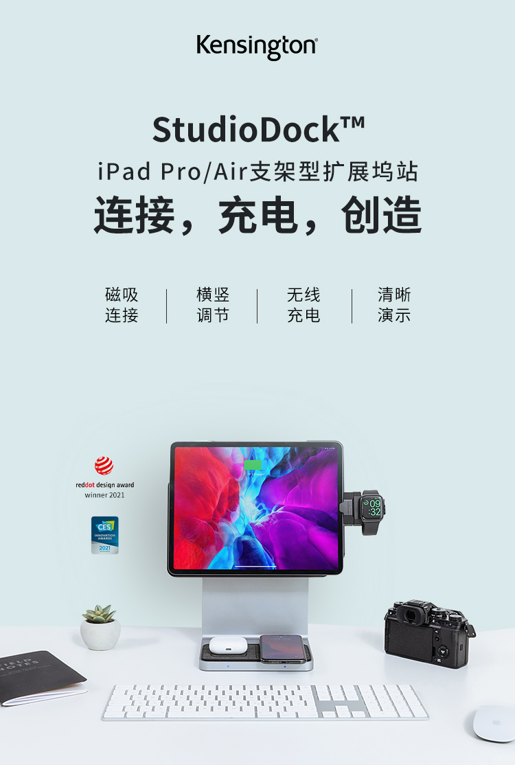 肯辛通(Kensington)StudioDock™iPad Pro2022坞USB转换器千兆网口适用12.9英寸(兼容2022版)K39160