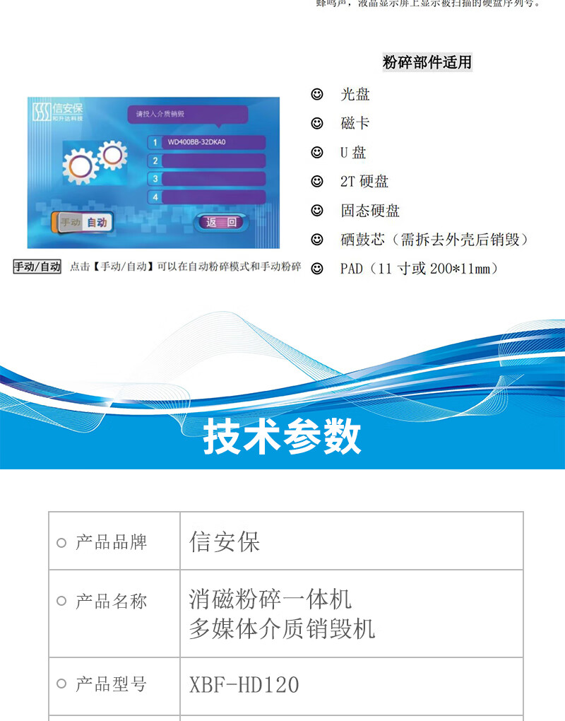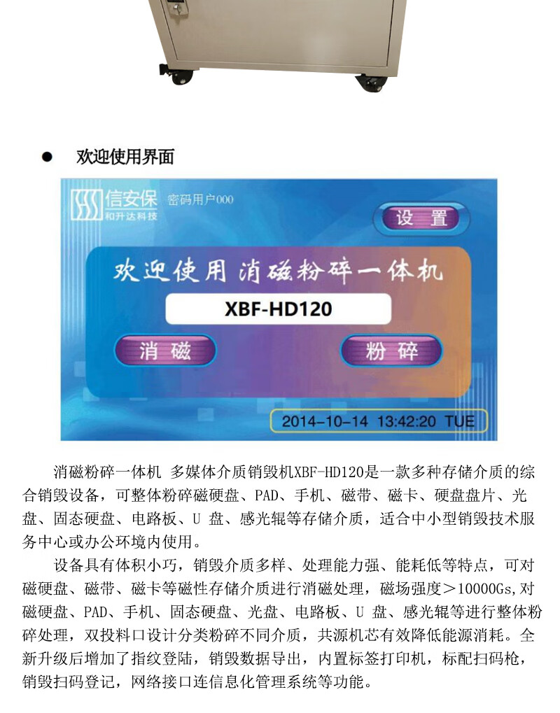 信安保XBF-HD120多媒体介质销毁机 硬盘粉碎机 消磁粉碎一体机