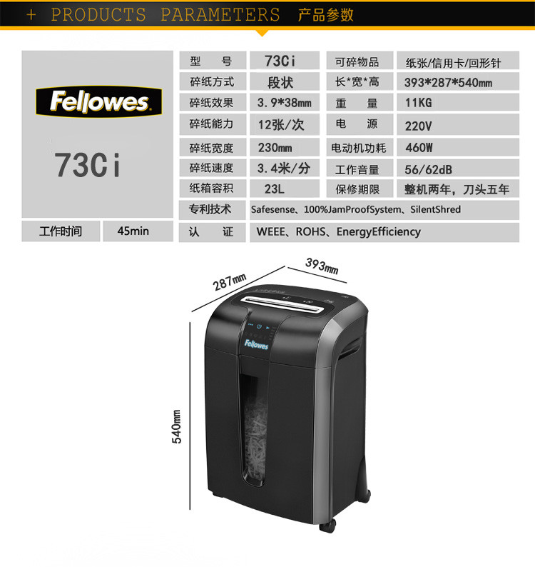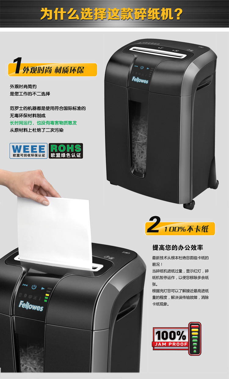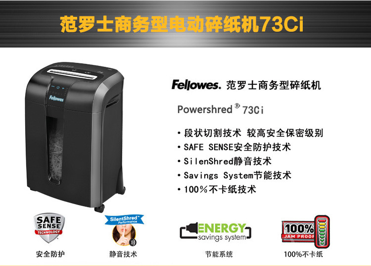 美国范罗士Fellowes 73CI碎纸机触控面板防卡纸碎纸机