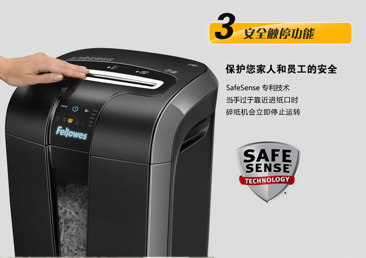 SafeSense技术当手过于靠近时,可停止碎纸运作,保证安全