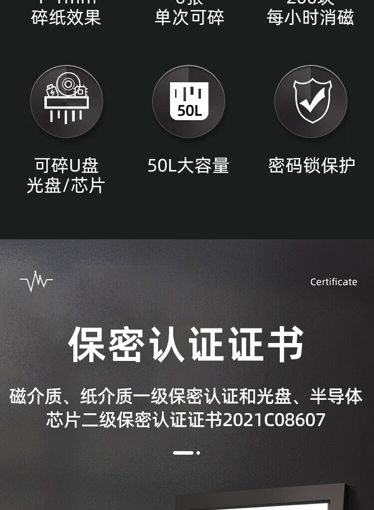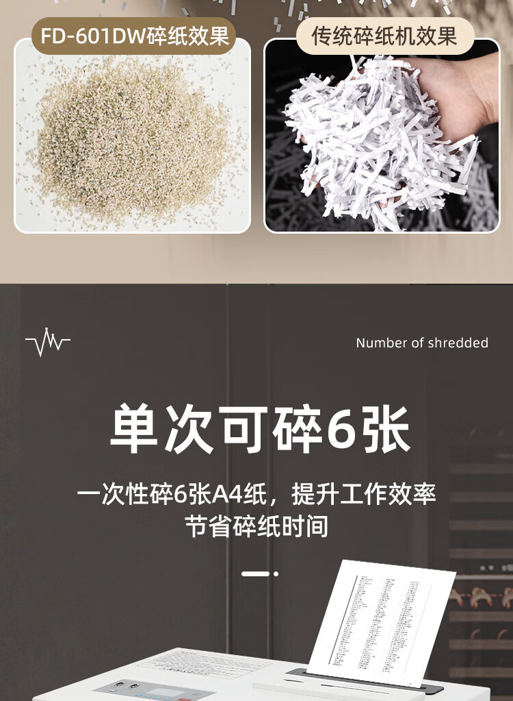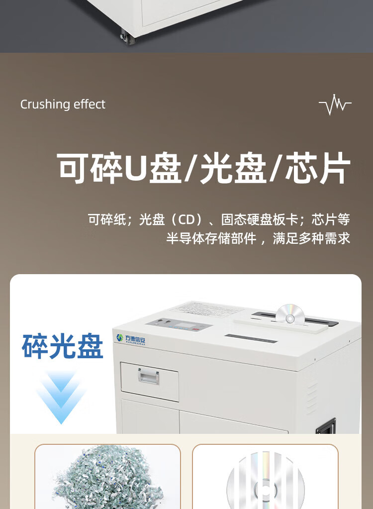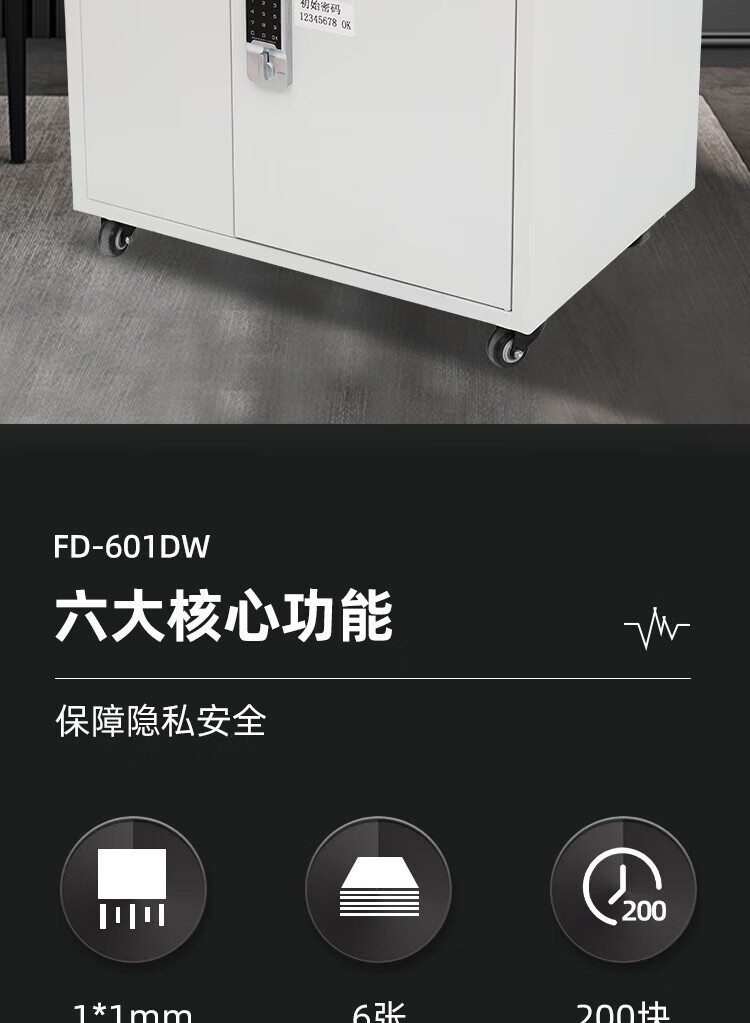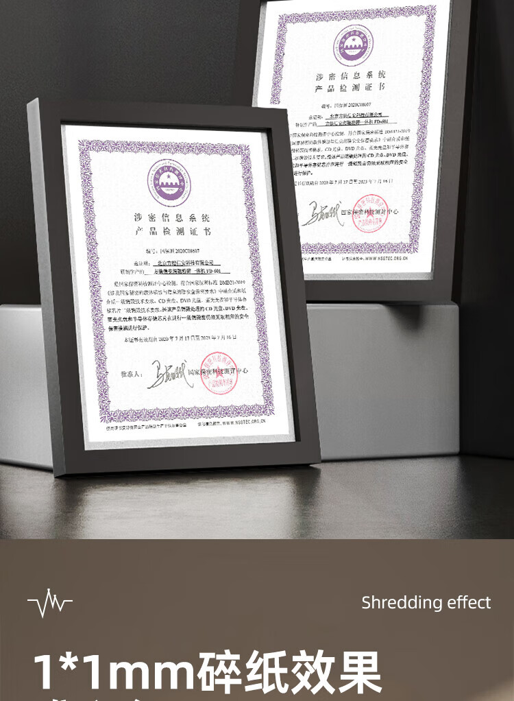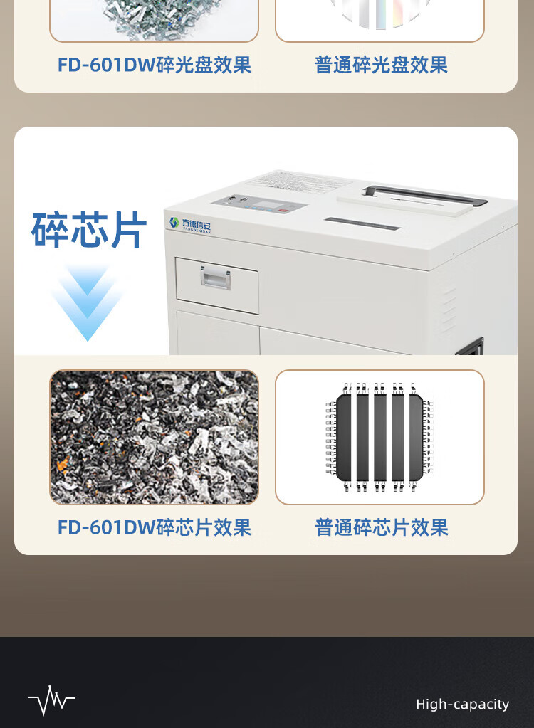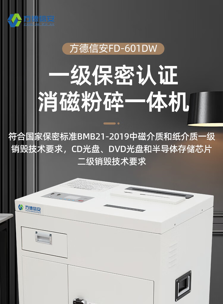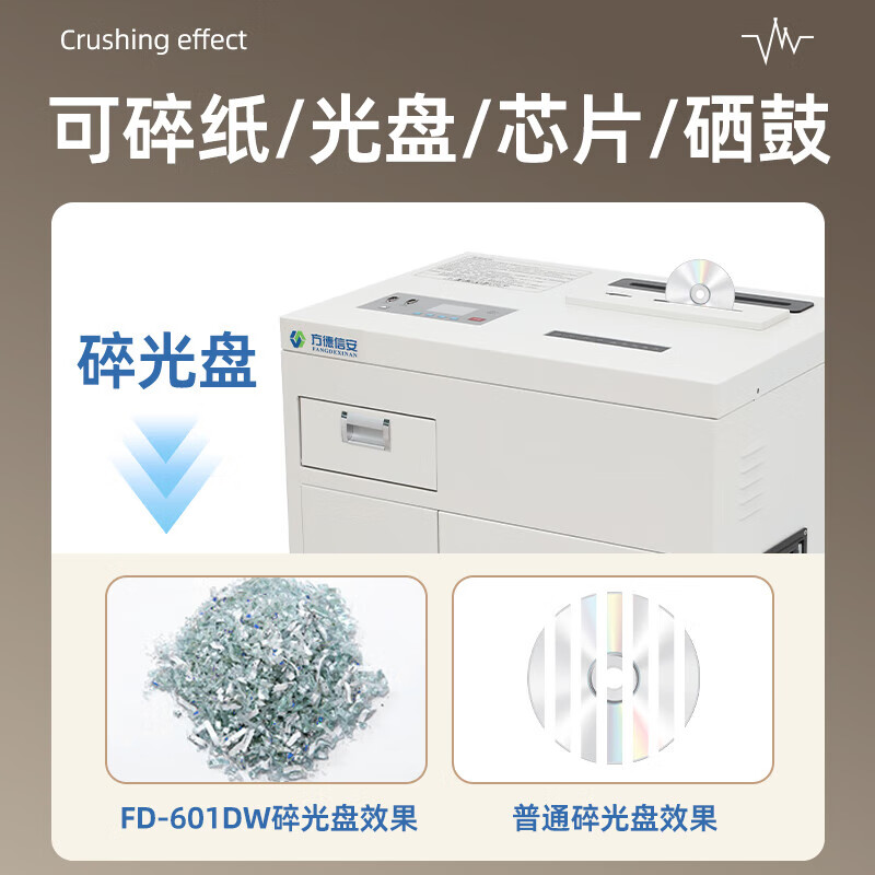 FDXA方德信安 高保密碎纸机(1*1mm碎纸 光盘、芯片2x4mm)一级保密认证消磁粉碎一体机FD-601
