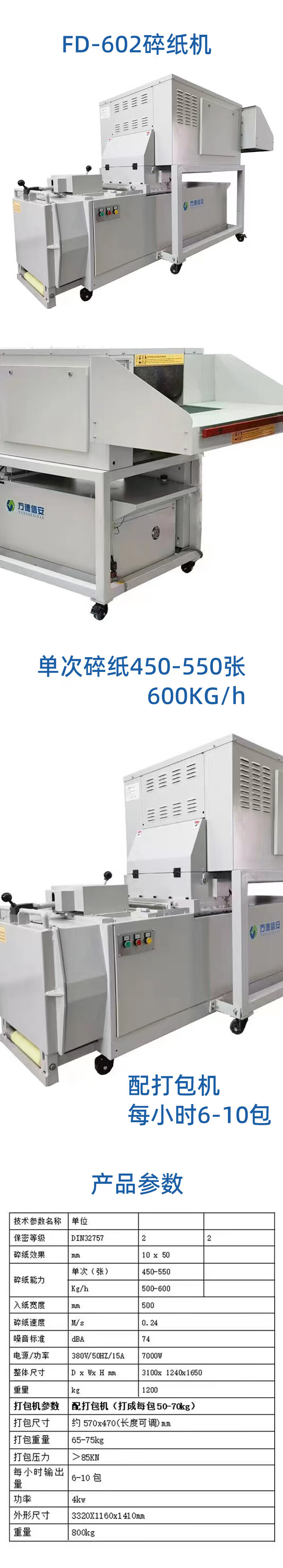 FDXA方德信安工业级碎纸机 600KG/h粉碎碎纸FD-602