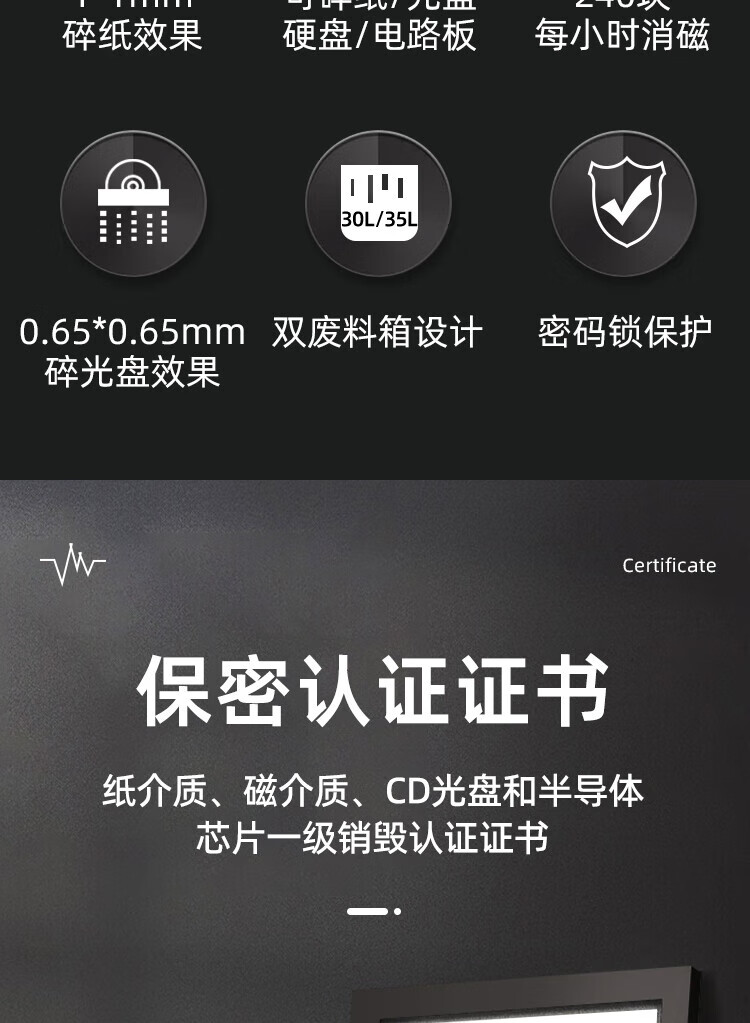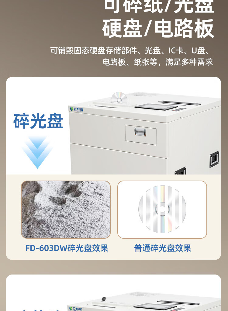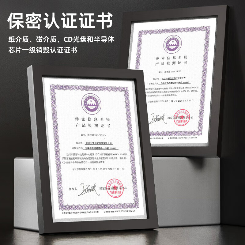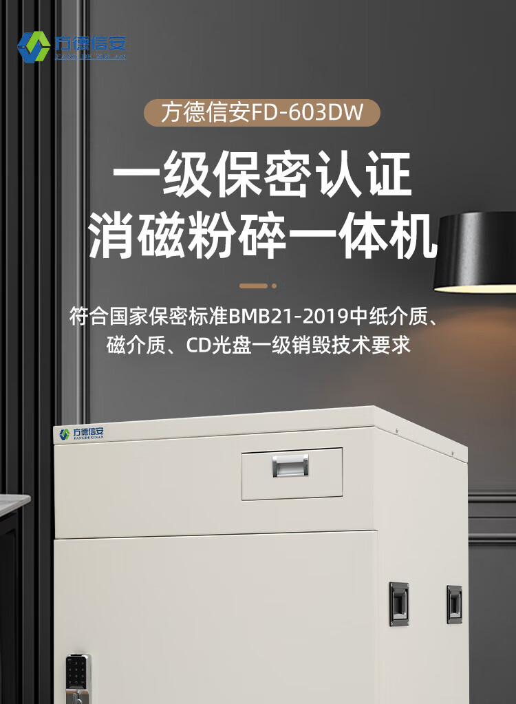 方德信安FDXA碎纸机一级保密认证消磁粉碎一体机(光盘0.65*0.65mm、纸1*1mm)FD-603