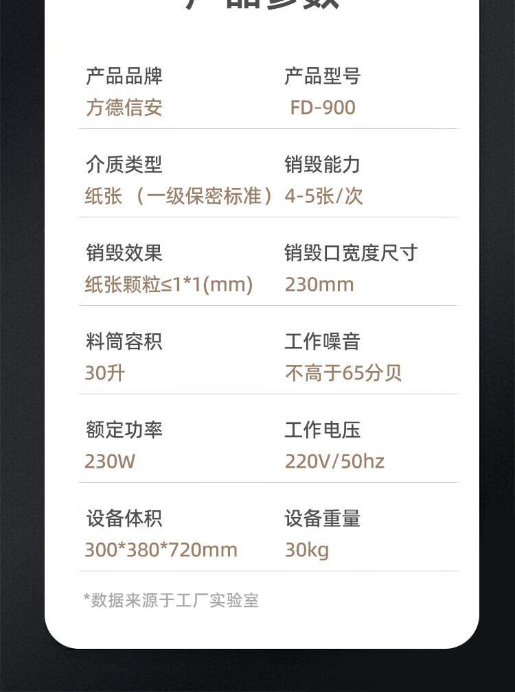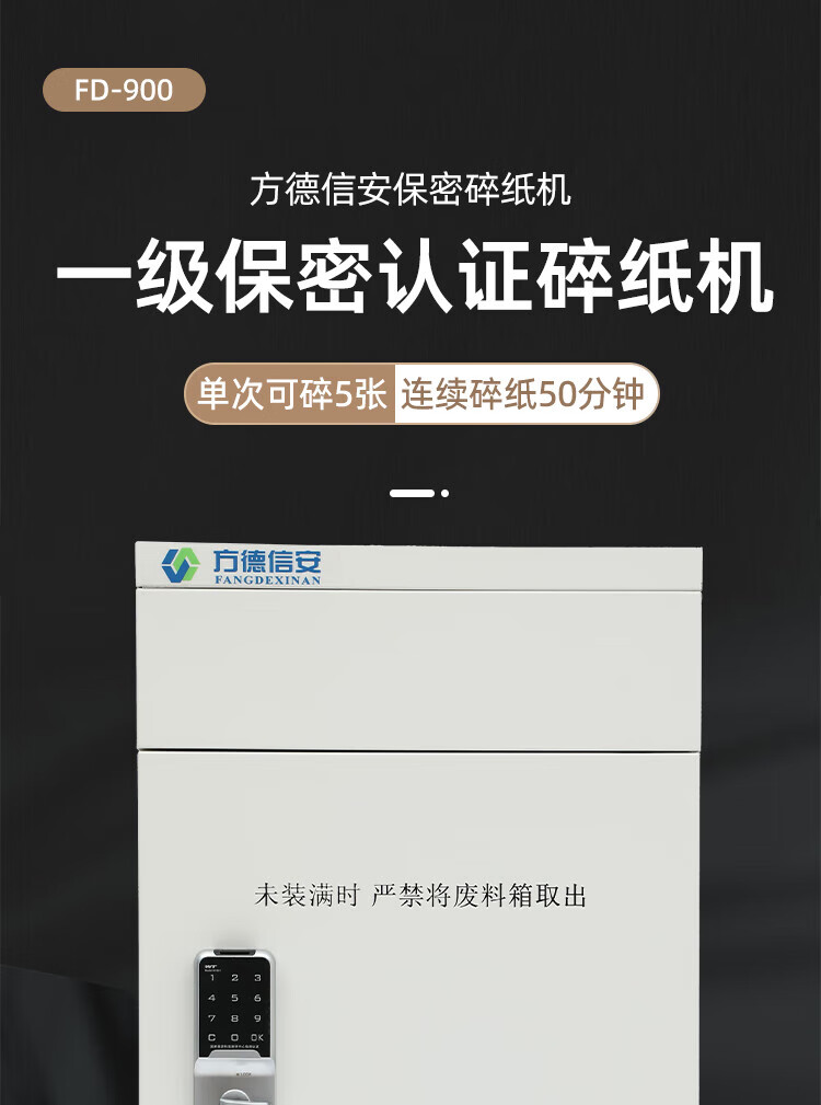 方德信安FDXA 高保密碎纸机 1*1mm一级保密认证纸张粉碎机FD-900