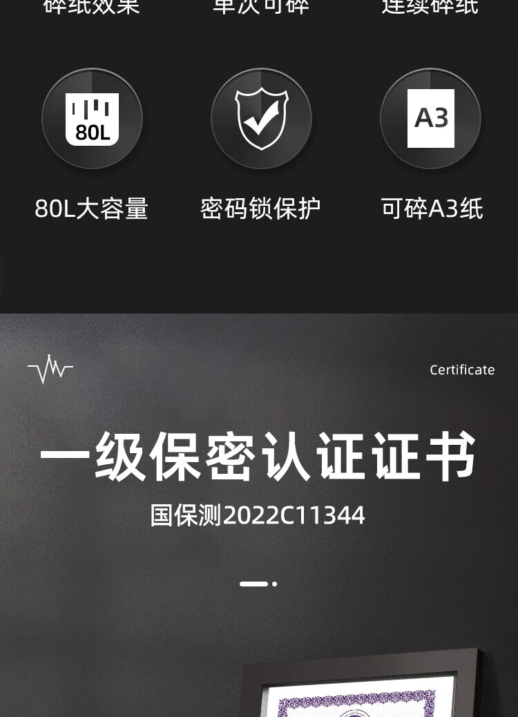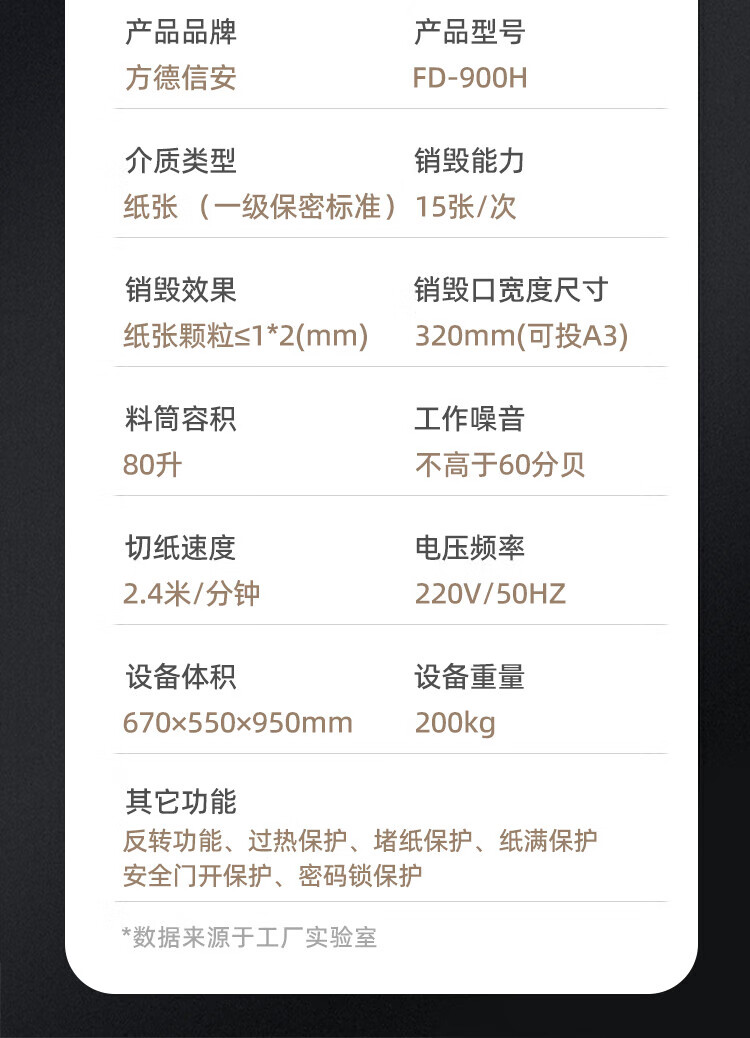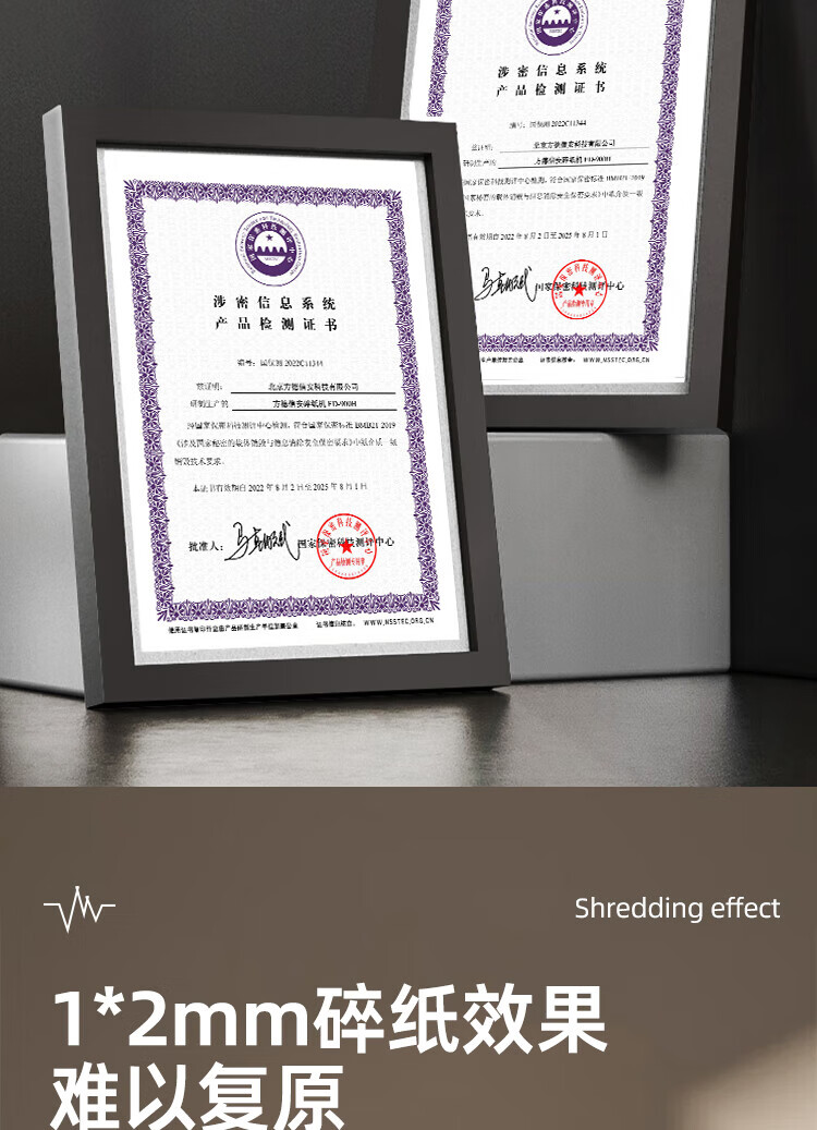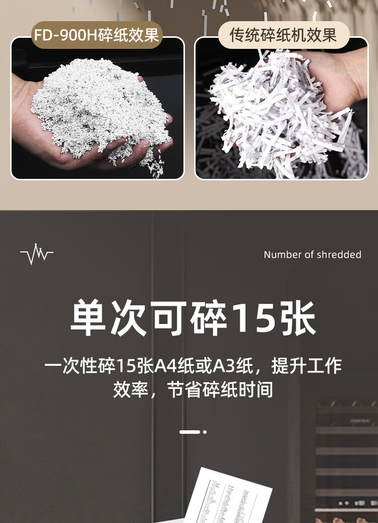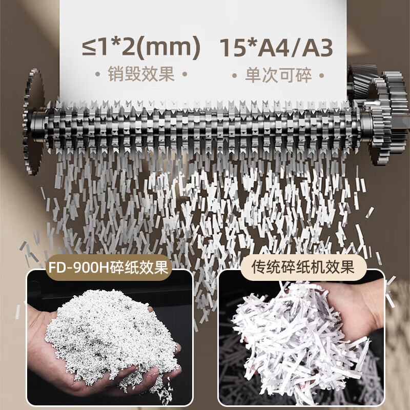 方德信安FDXA 高保密碎纸机1*2mm一级保密认证纸张粉碎机可碎A3纸FD-900H