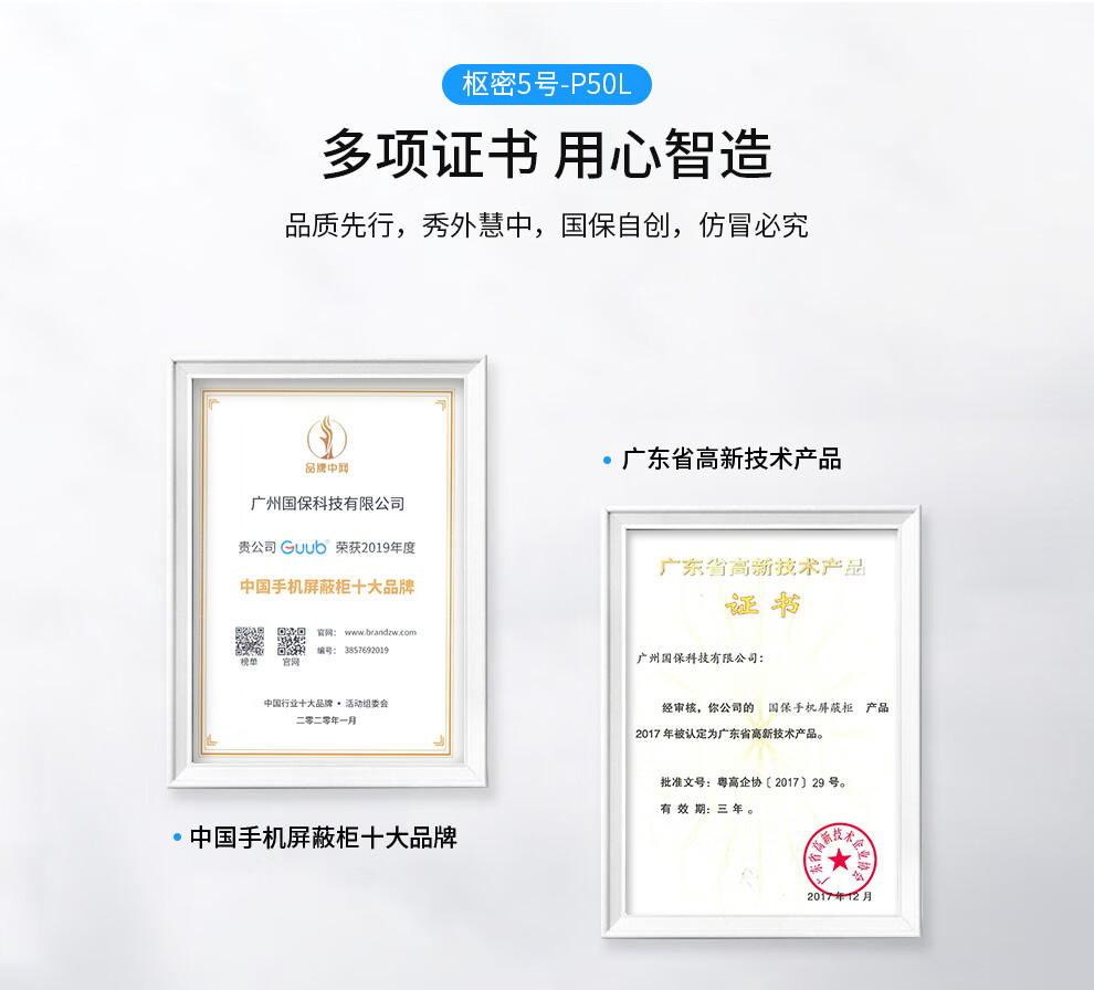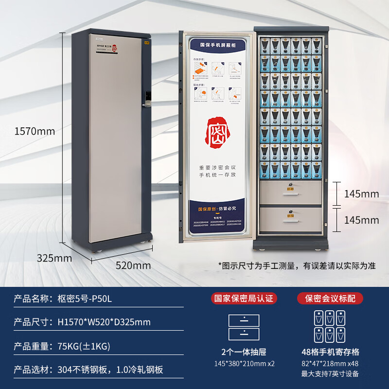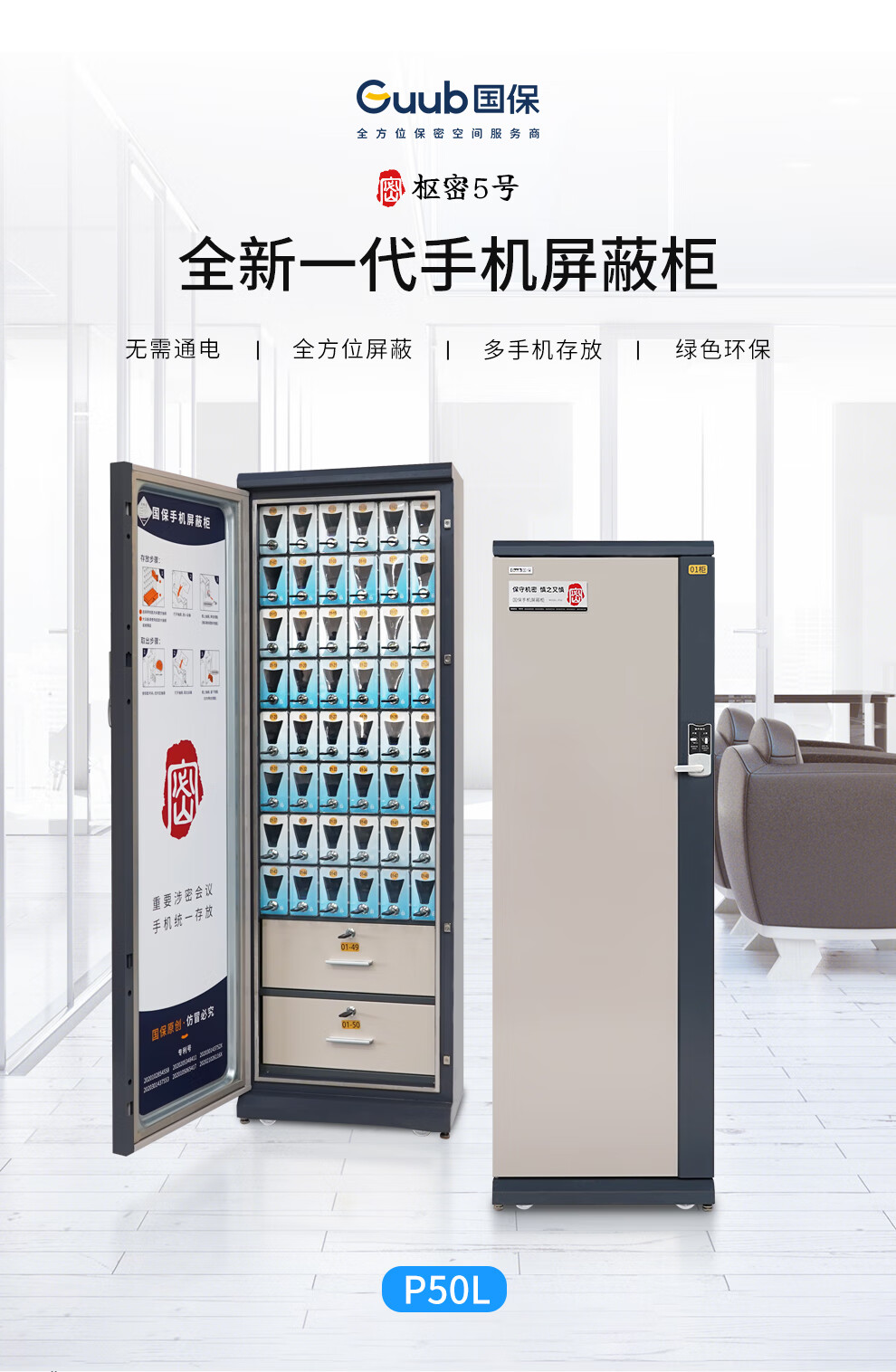 国保(Guub)50格手机屏蔽柜保密认证保密会议5G信号屏蔽柜存放柜P50L(左开门)