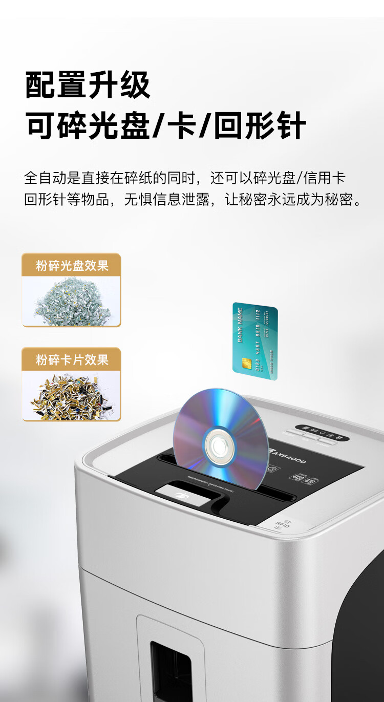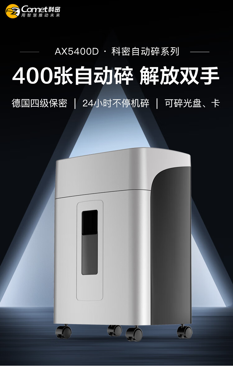 科密(comet)全自动碎纸机 4级高保密办公商用粉碎机(全自动400张 手动15张 24小时不停机 碎光盘)AX5400D