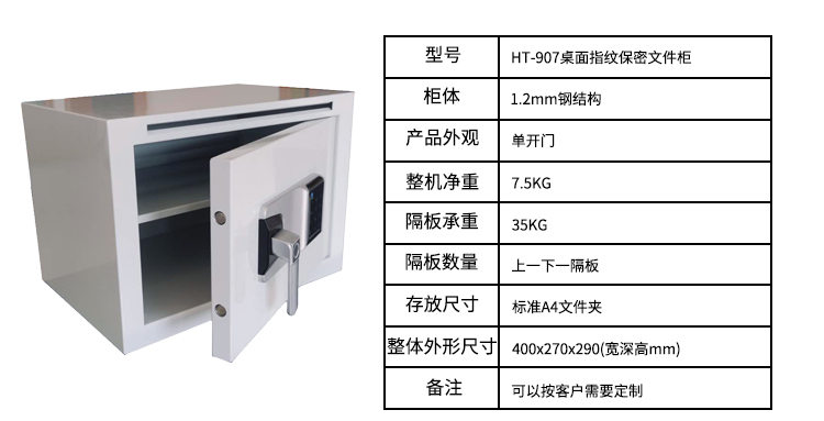 航天润普高29CM指纹密码保密 小型办公桌面保密柜 HT-907