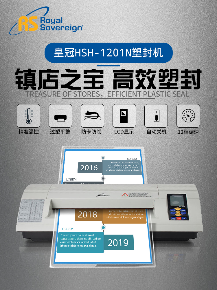 皇冠HSH-1201N液晶显示连续24小时生产塑封机A3过塑机工业过胶机