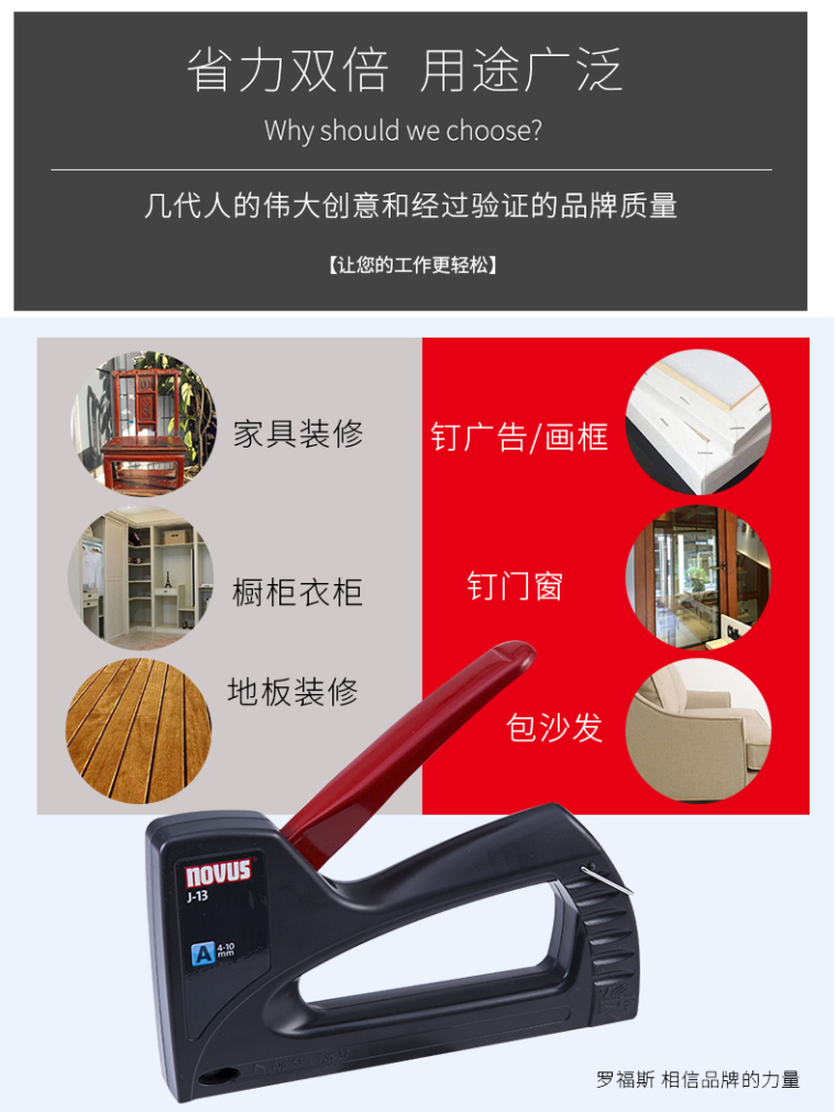 NOVUS罗福斯J13小型迷你便携式手动码钉枪射钉枪沙发画框地毯装修 J-13