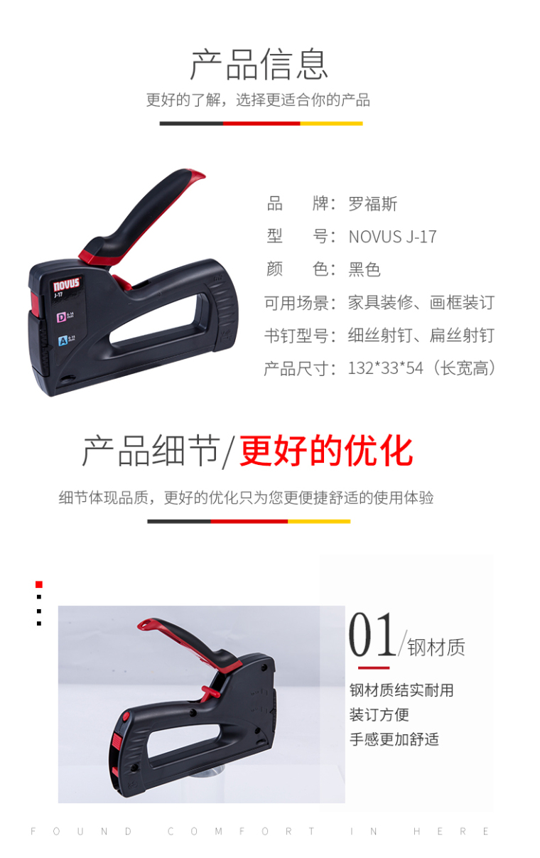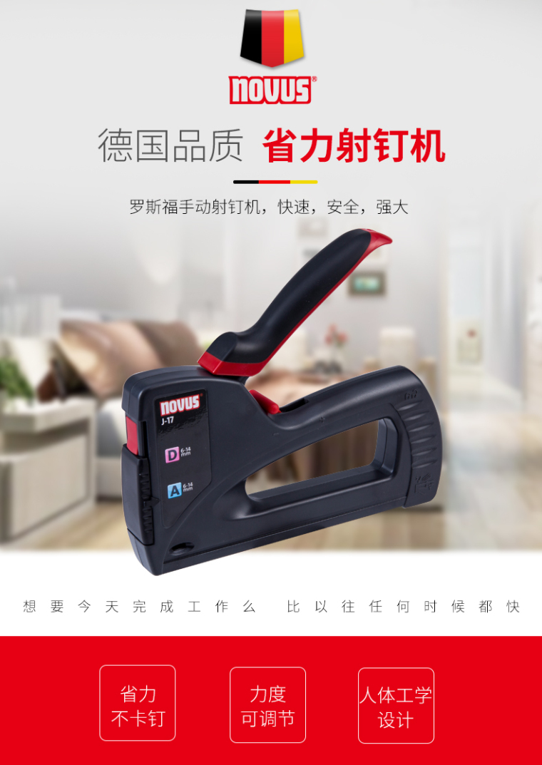 罗福斯(novus) 德国射钉枪J-17自动射钉枪手动U型打钉器木质沙发油画相框装订工具多功能码钉枪 J17射钉枪一个