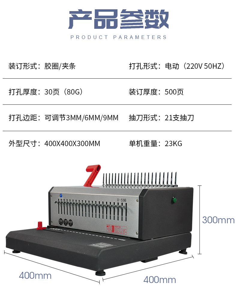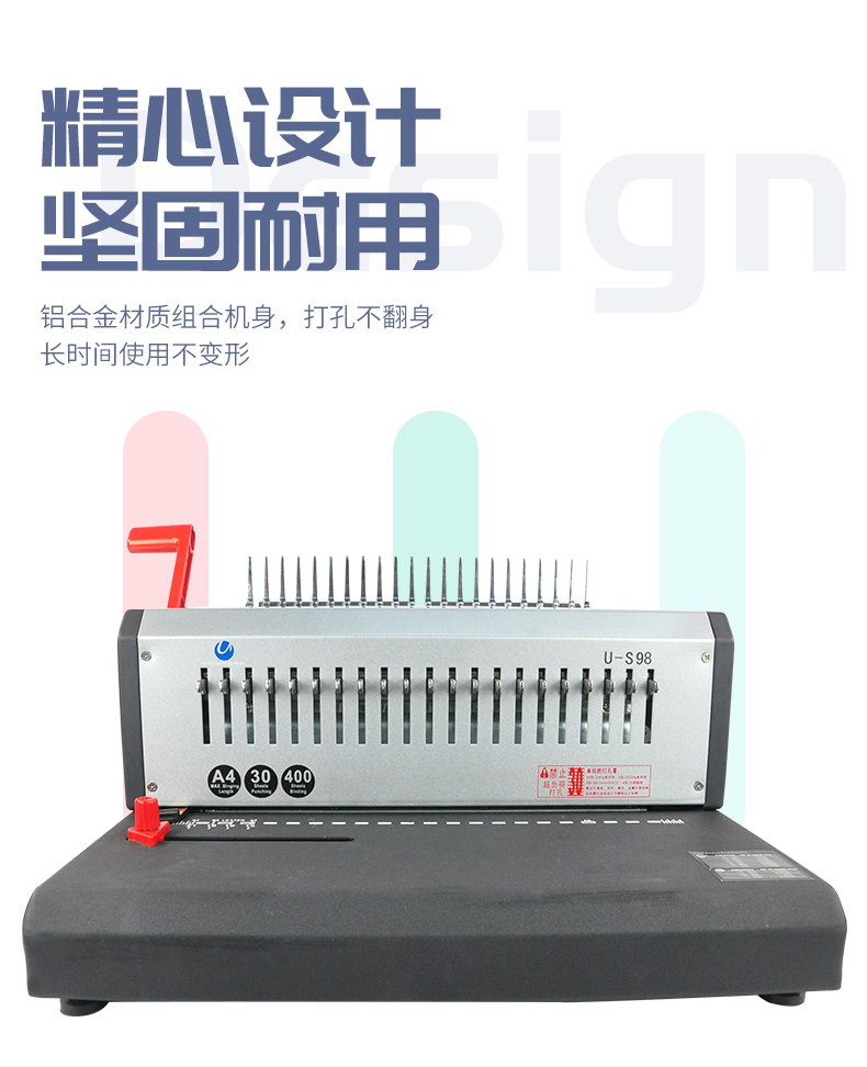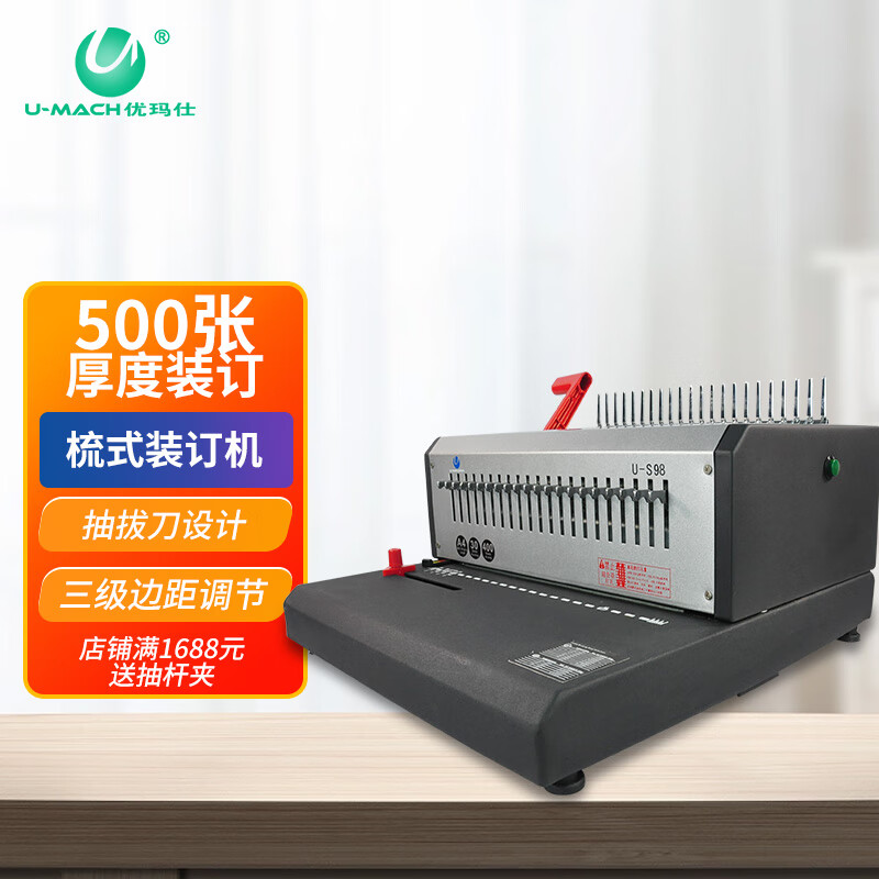 优玛仕 (U-MACH) U-S98电动重型打孔机全抽刀疏式装订机胶圈夹条两用机
