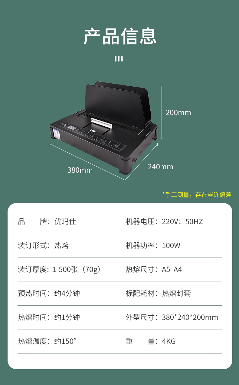 优玛仕 (U-MACH)U-55自动热熔装订机无线胶装机小型文本标书装订机