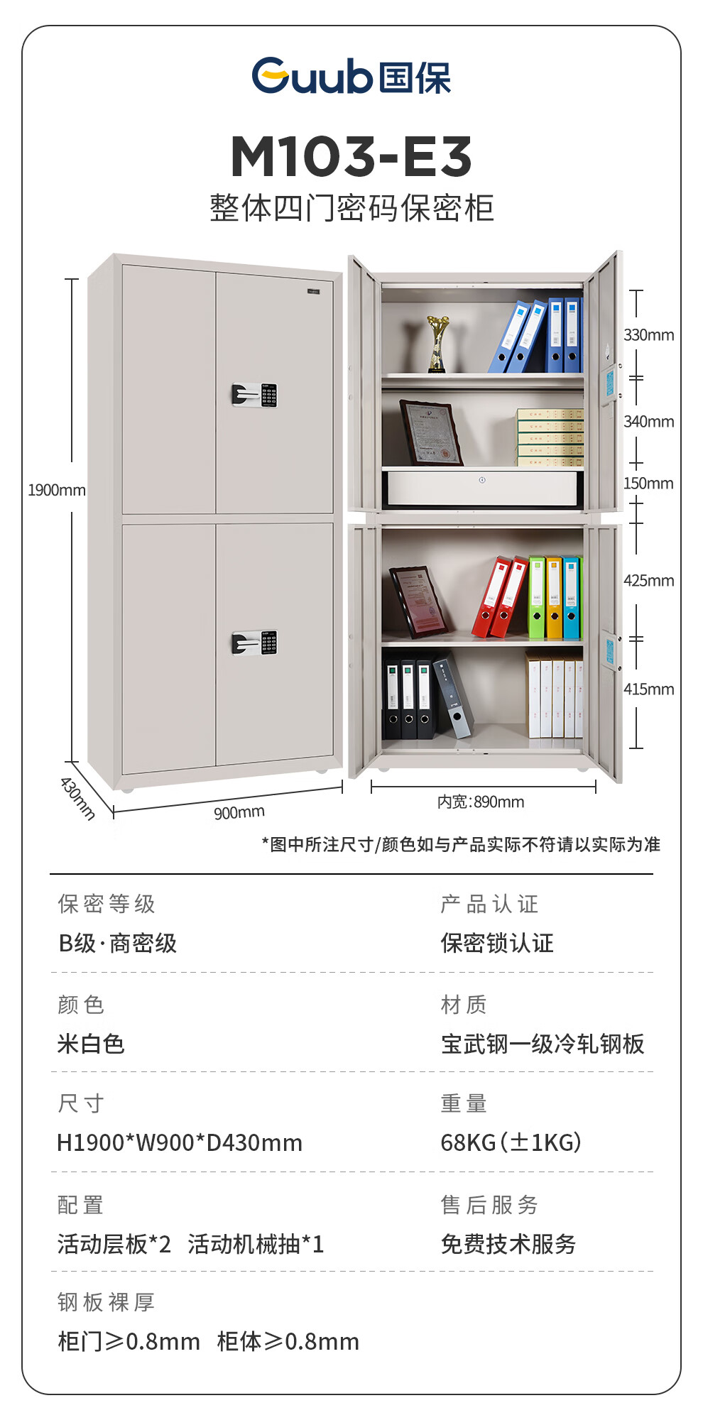国保(Guub)保密柜电子密码锁办公文件柜国家认证通双节文档保险柜M103-E3
