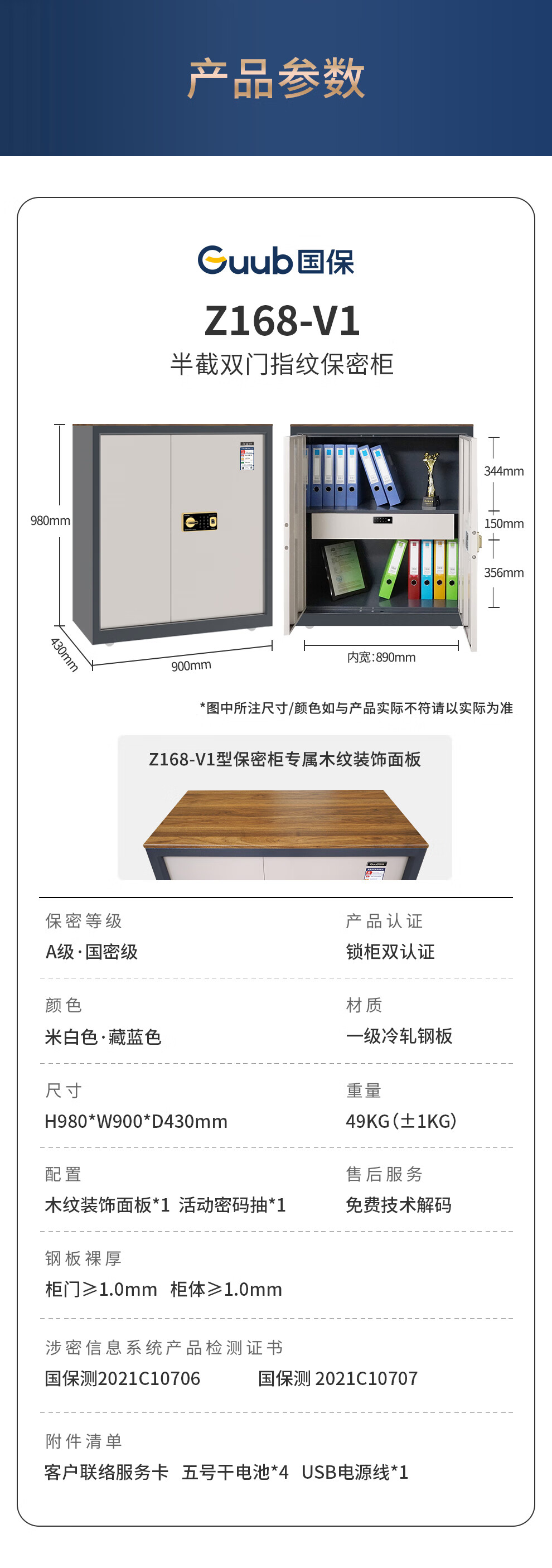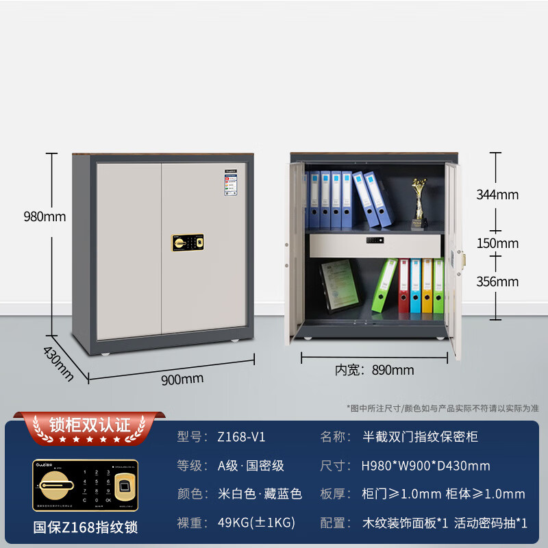 国保(Guub)保密柜V1指纹密码办公文件柜小型家用办公保险柜带顶板Z168-V1