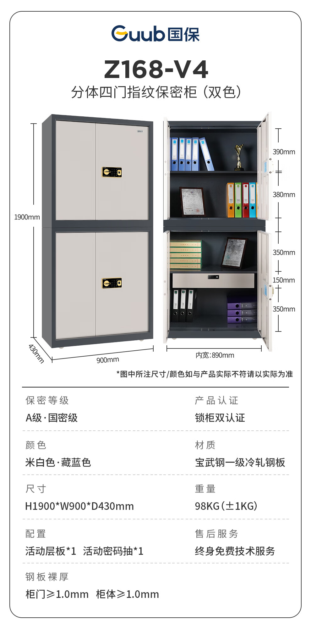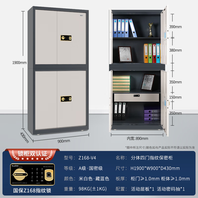 国保(Guub)保密柜Z168-V4办公指纹电子密码锁文件柜保密认证分体档案柜V4