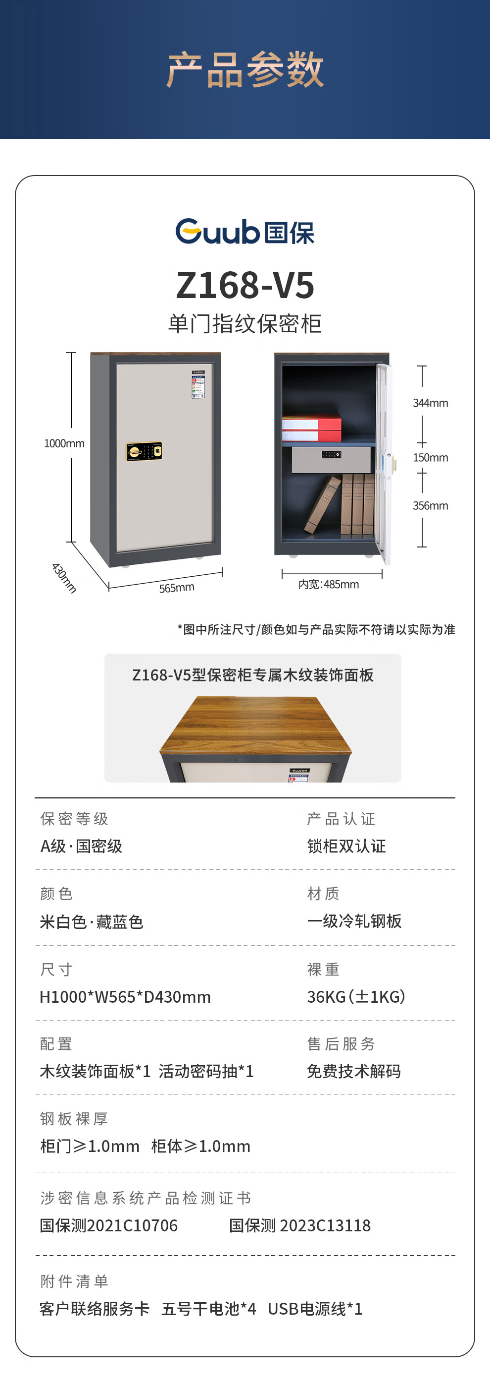 国保(Guub)V5保密柜指纹密码柜电子办公柜保密认证文件柜单门凭证柜Z168-V5