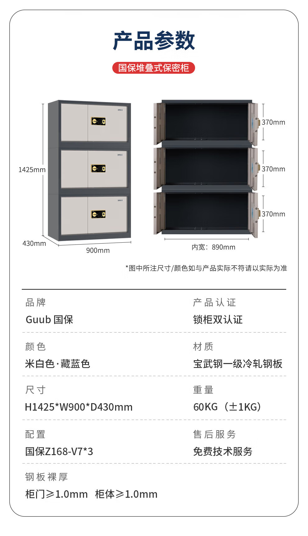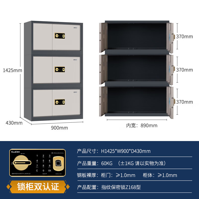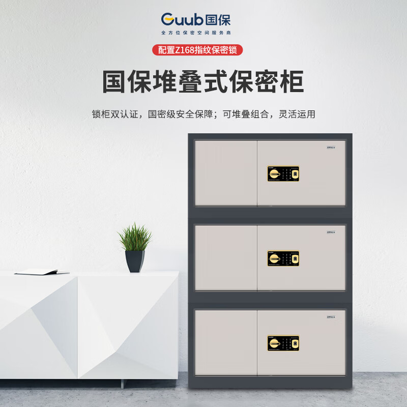国保(Guub)保密柜Z168-V7三层堆叠柜指纹密码文件柜A级国密