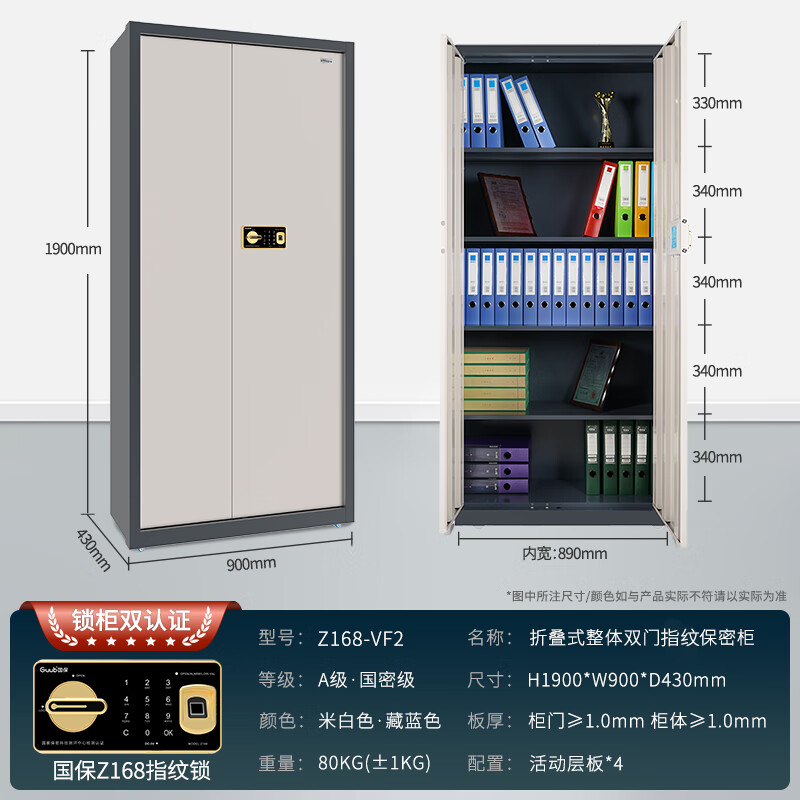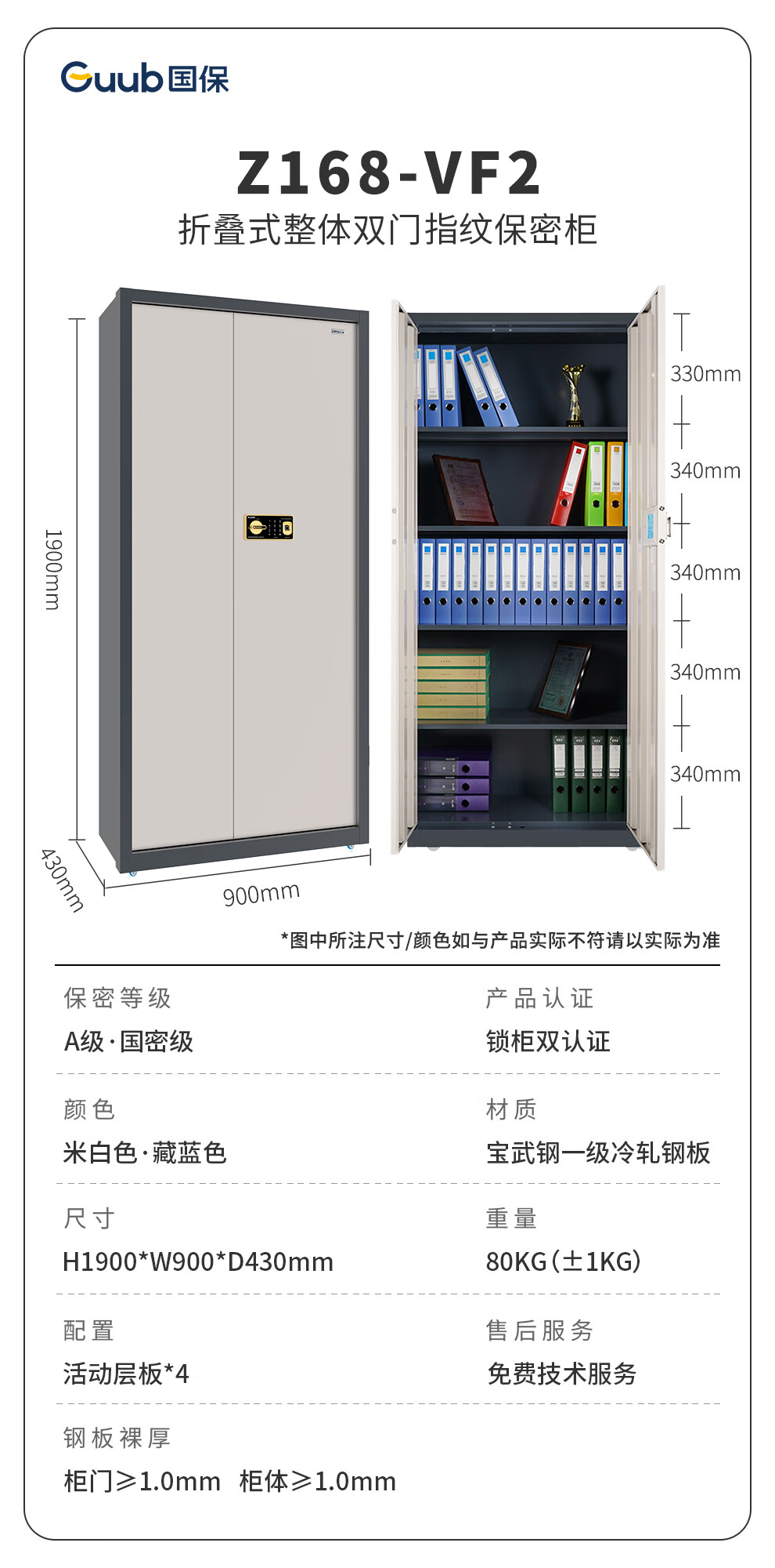国保(Guub)保密柜指纹密码折叠文件柜资料柜国家保密认证通门文档柜Z168-VF2