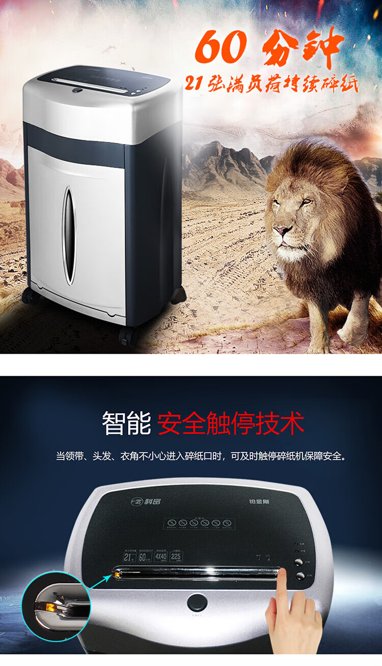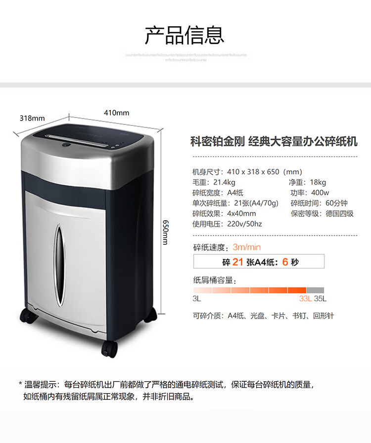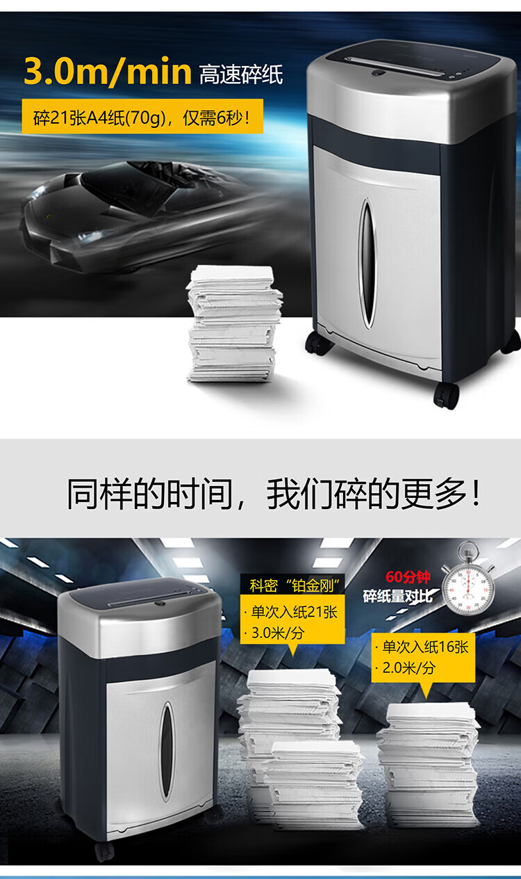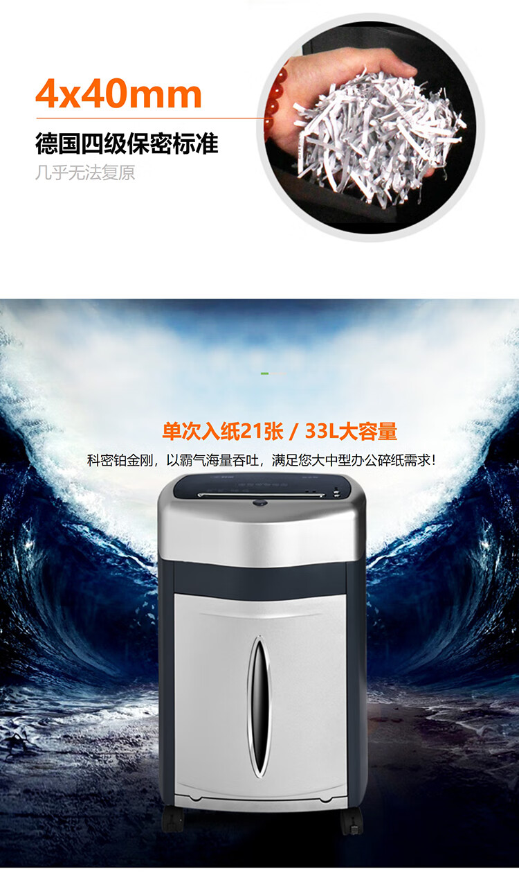 科密(comet)5级保密办公商用碎纸机(单次10张 持续90分钟 32L 可碎卡、光盘)C-968