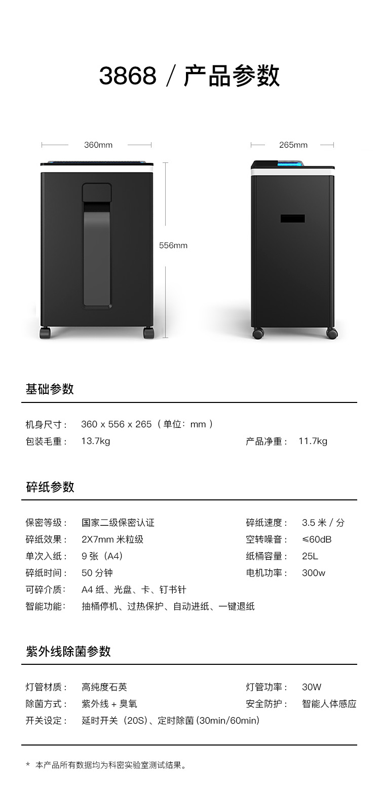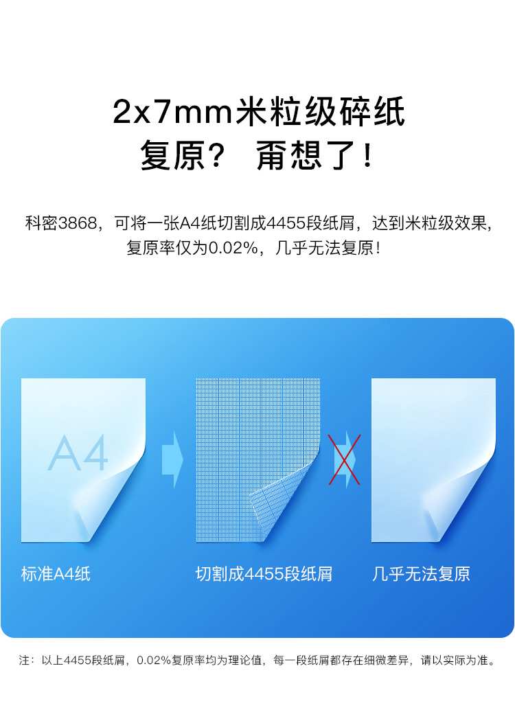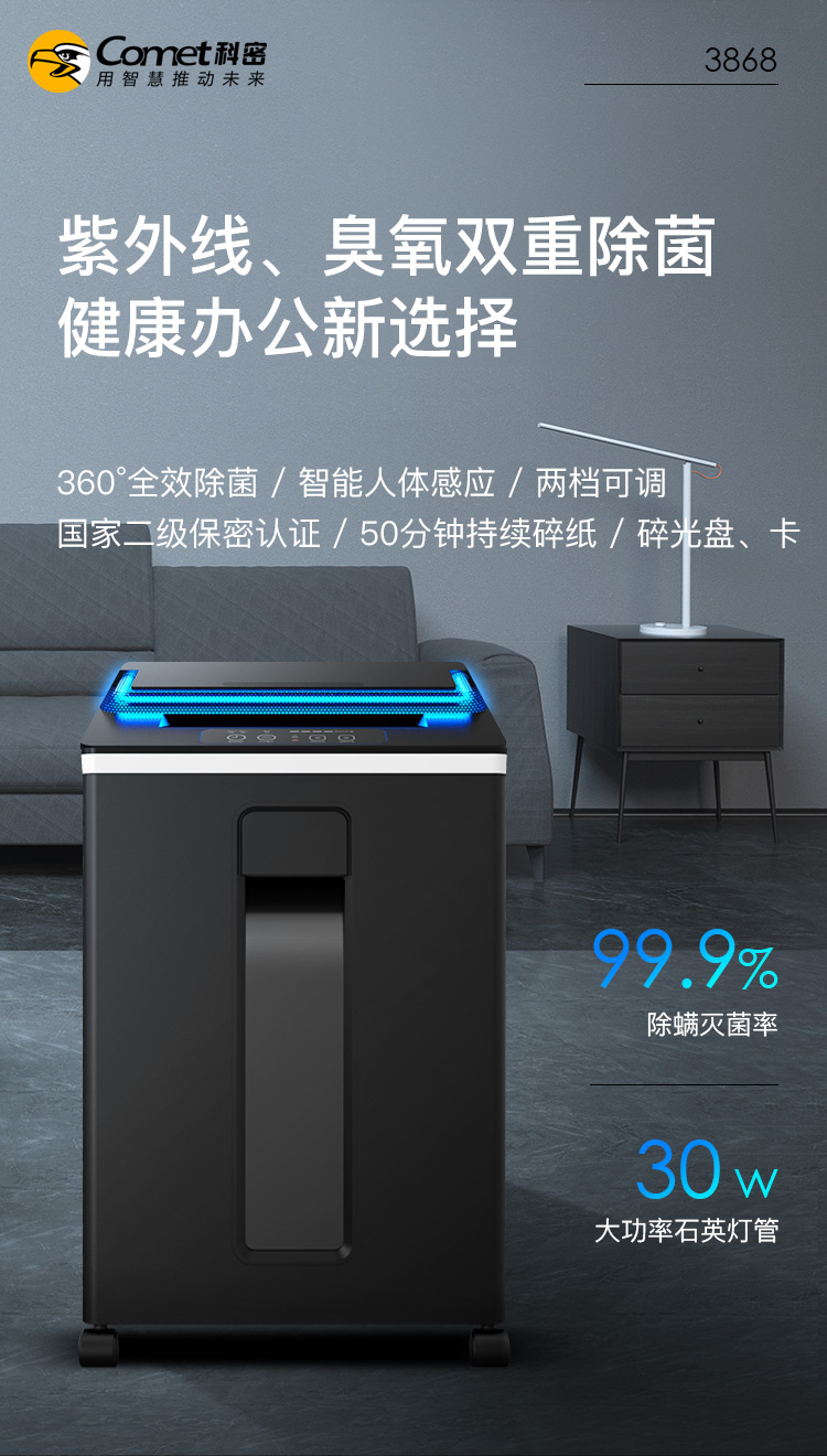 科密(comet) 3868 5级保密办公商用家用除菌除螨碎纸机(单次9张 持续50分钟 25L 可碎卡、光盘 )