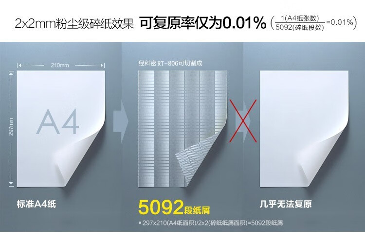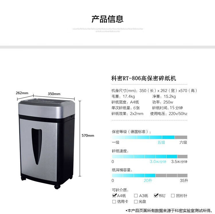 科密(comet)国家二级保密办公商用碎纸机(单次6张 持续15分钟 20L 可碎卡、书钉 )RT-806