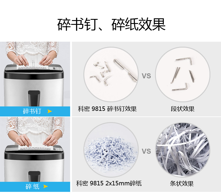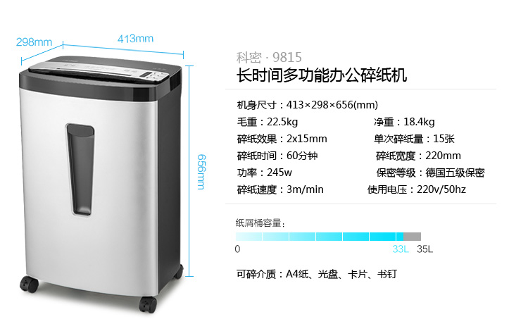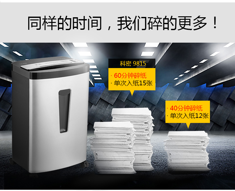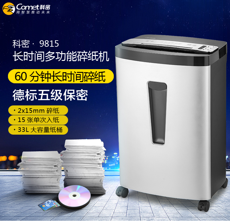 科密(comet)9815 5级保密办公家用碎纸机(单次15张 持续60分钟 33L 可碎卡、光盘)